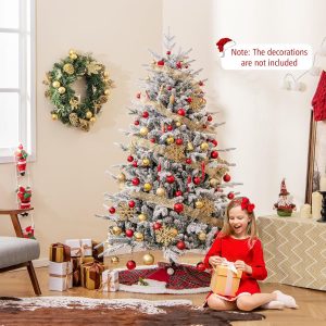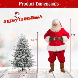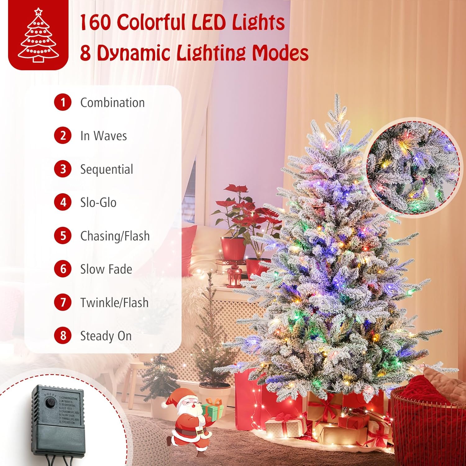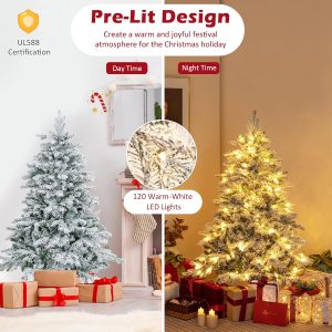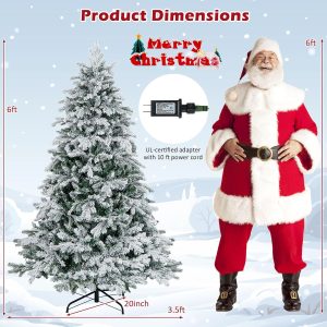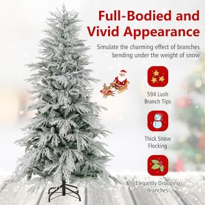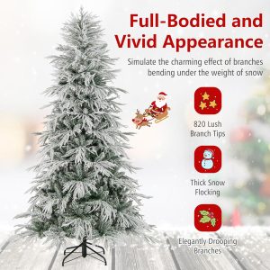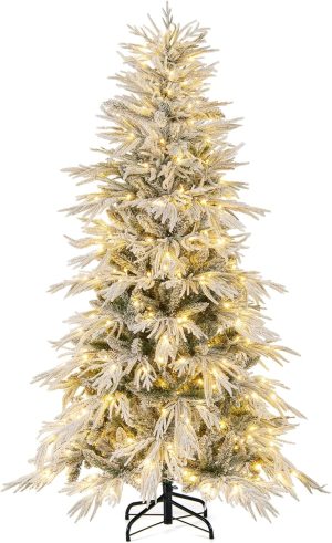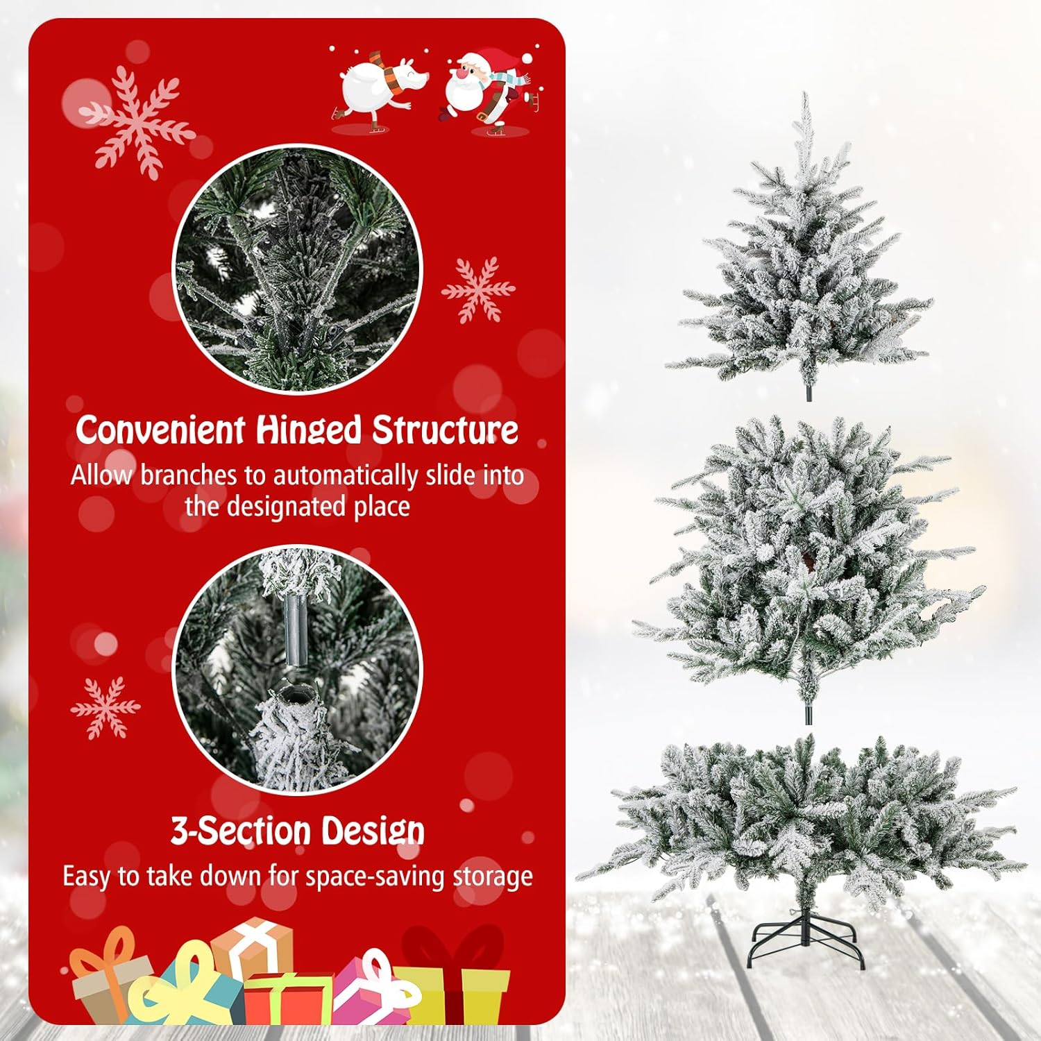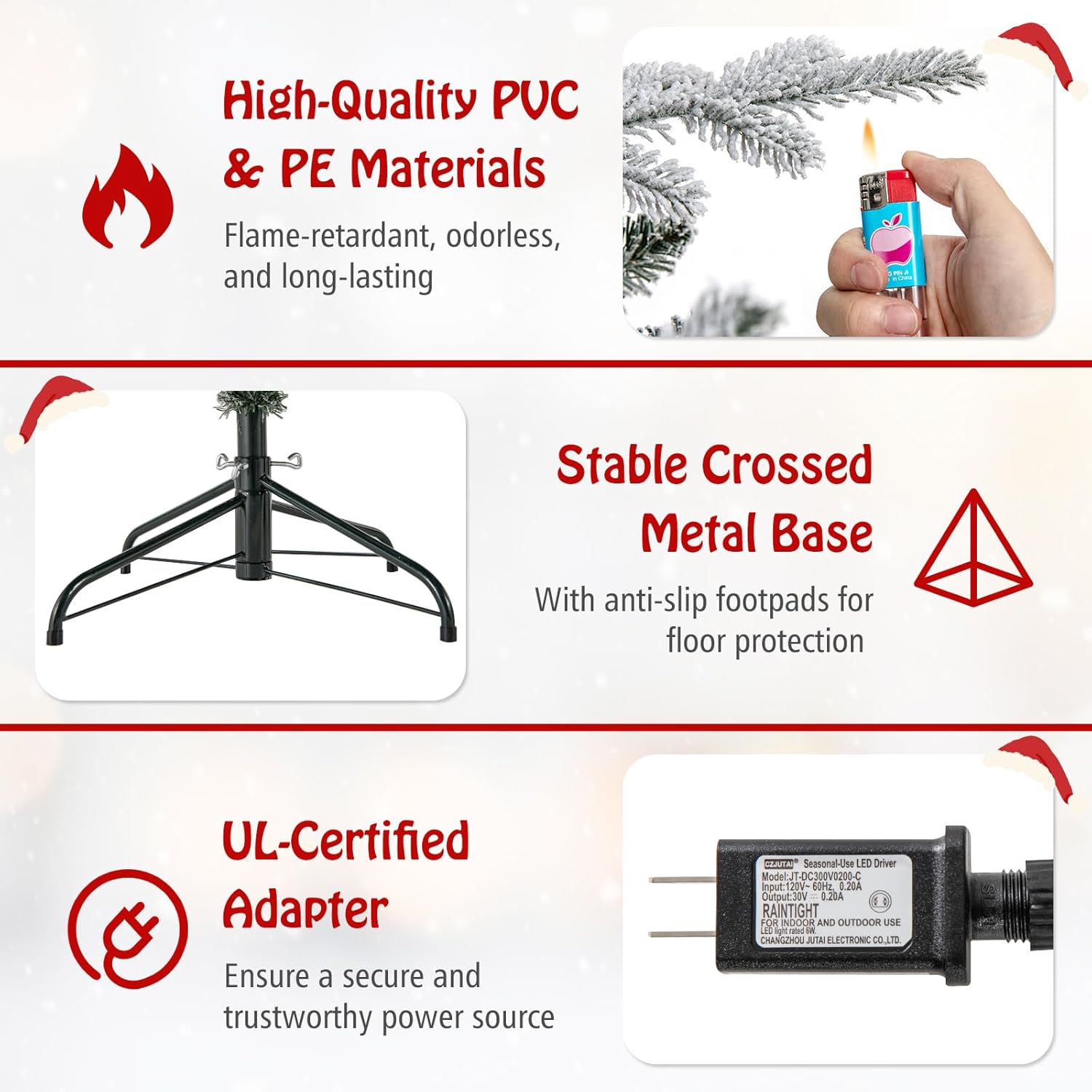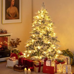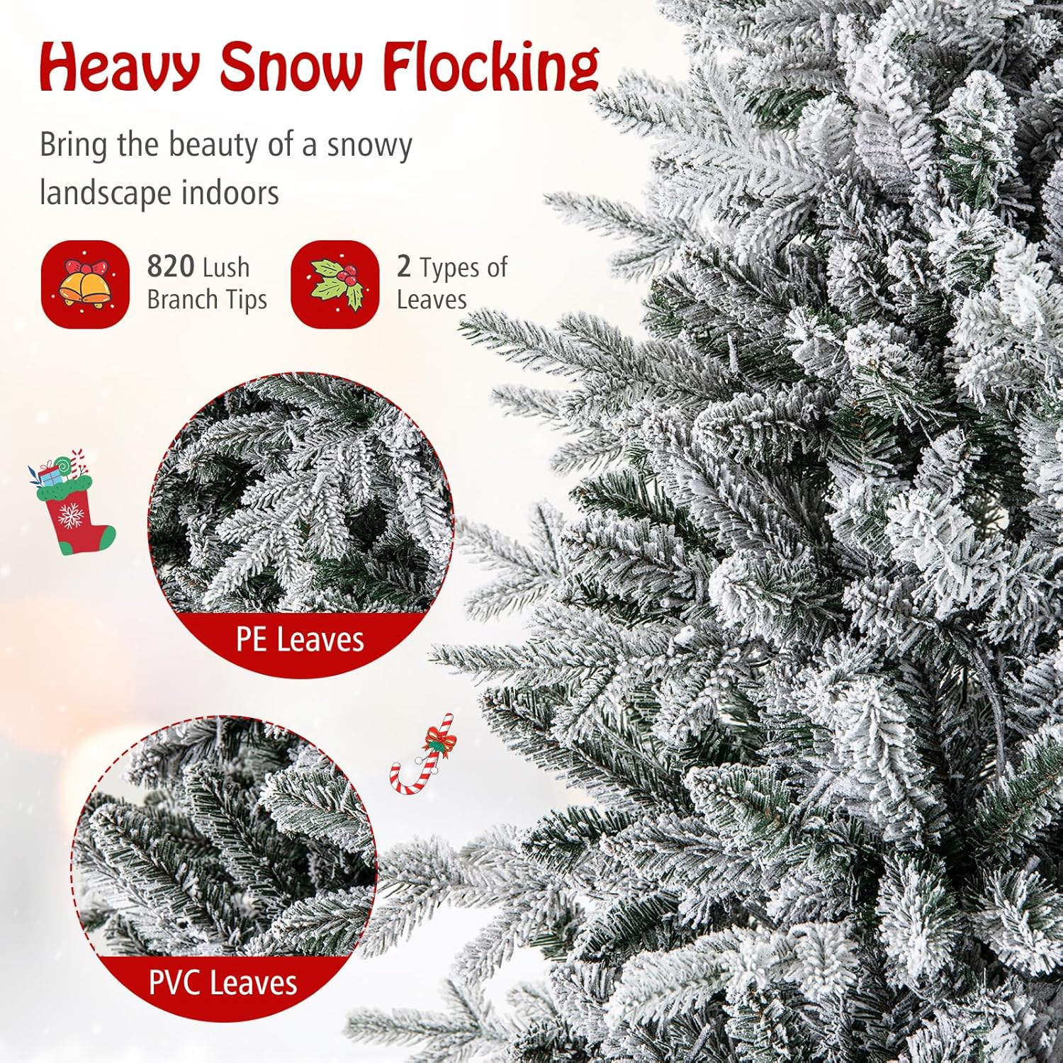 Goplus 8 FT Pre-Lit Artificial Christmas Tree, Hinged Full Xmas Tree with 1470 PVC & Soft TPE Branch Tips, 470 Warm White LED Lights, Foldable Metal Stand, Home Office Holiday Decoration