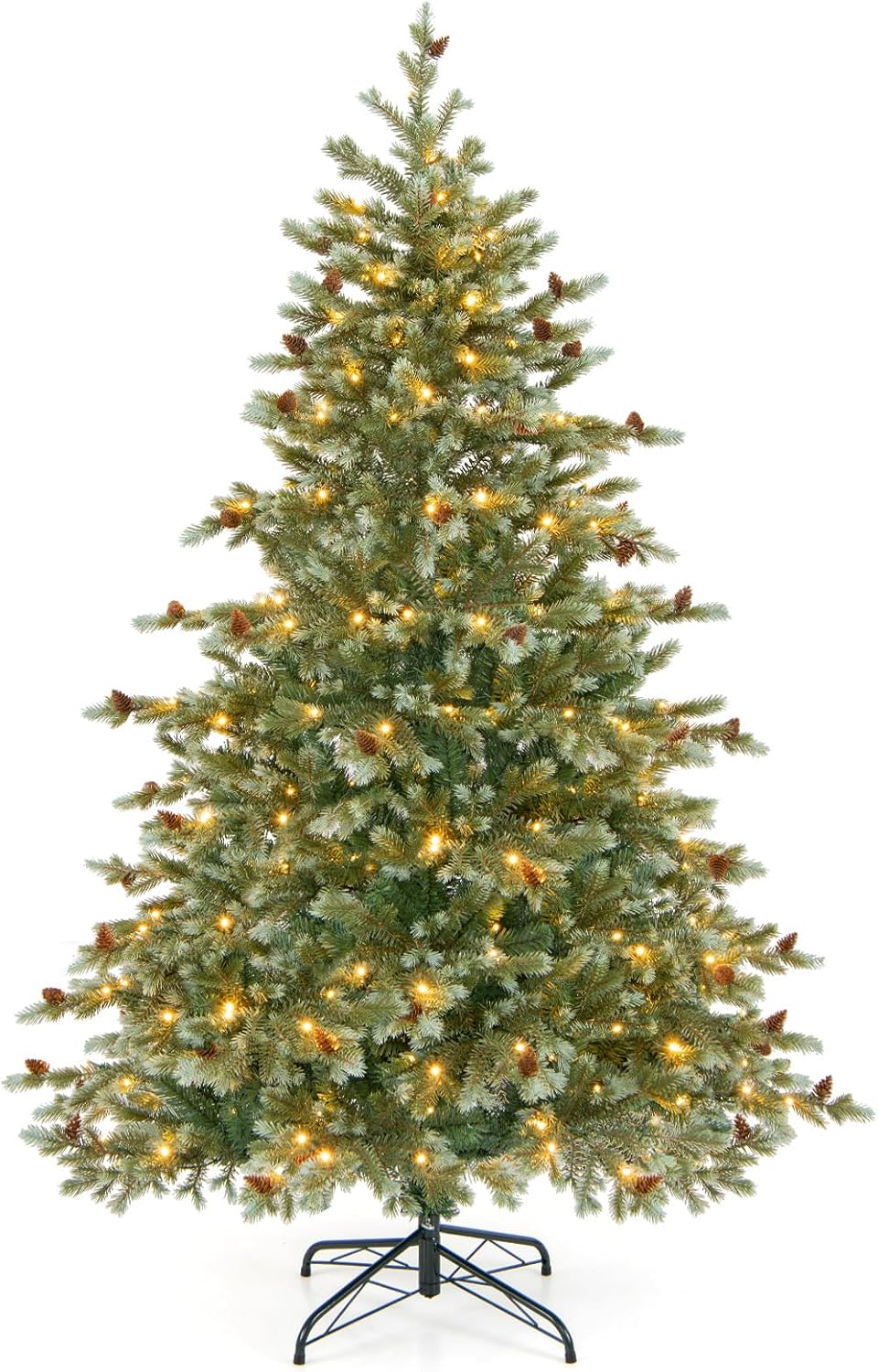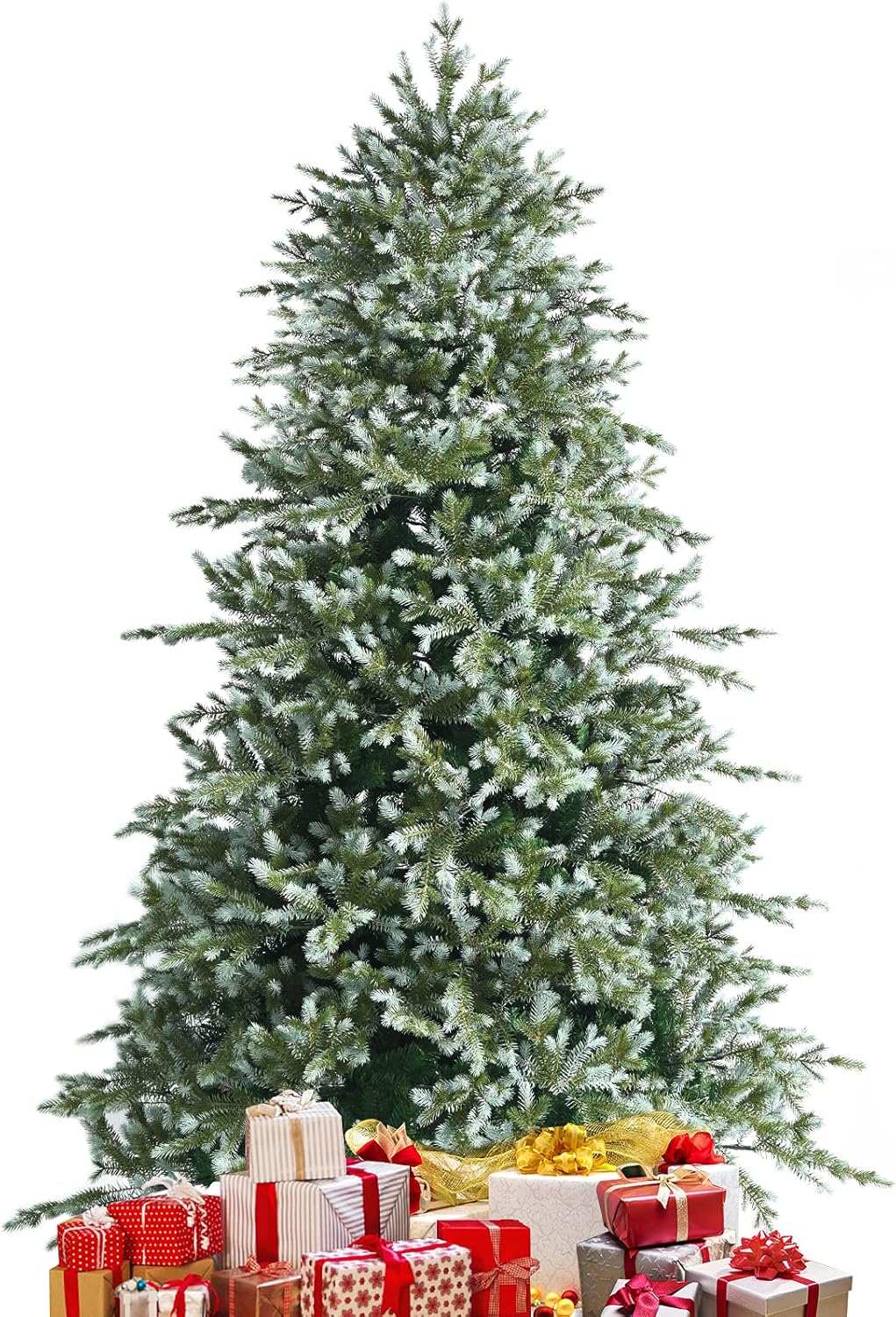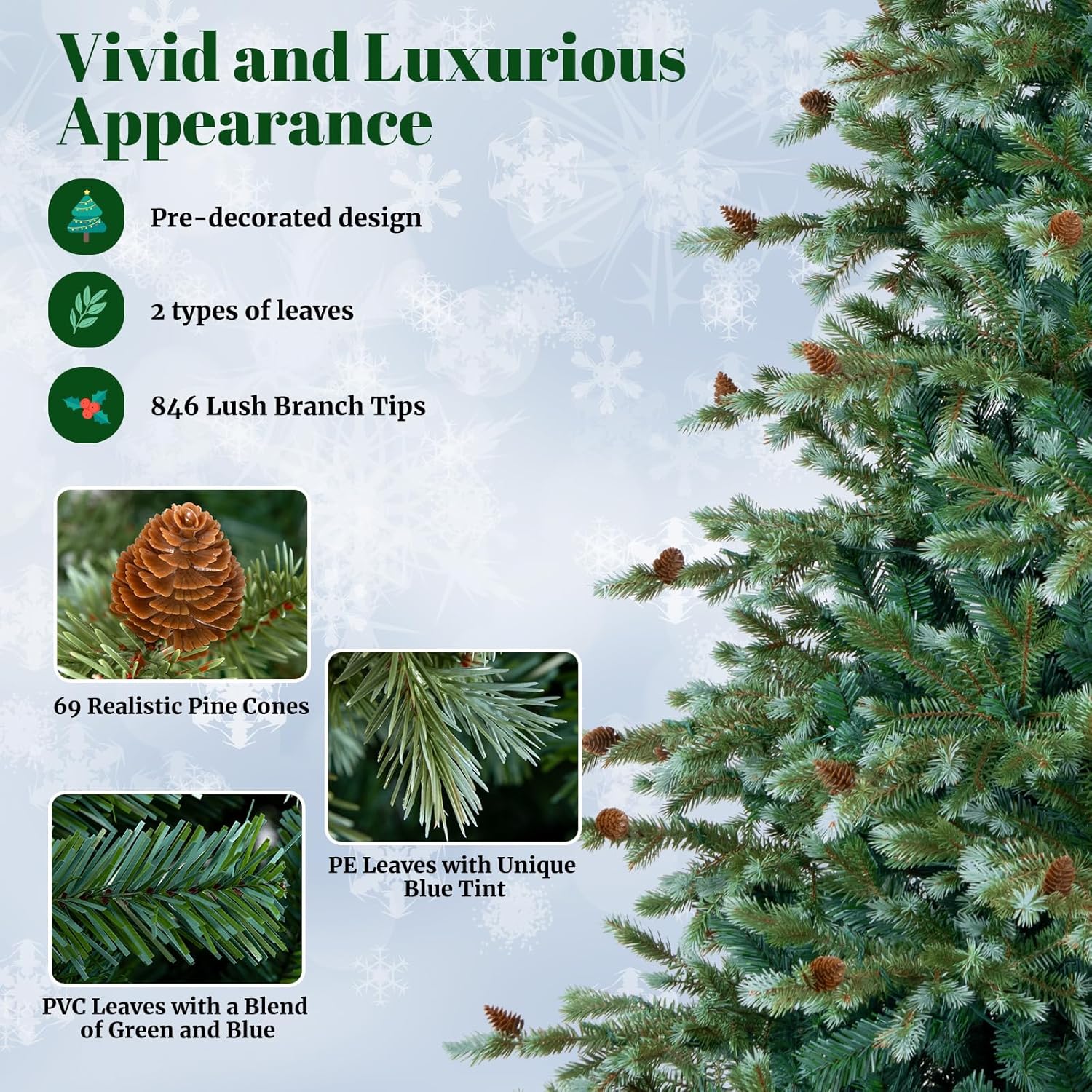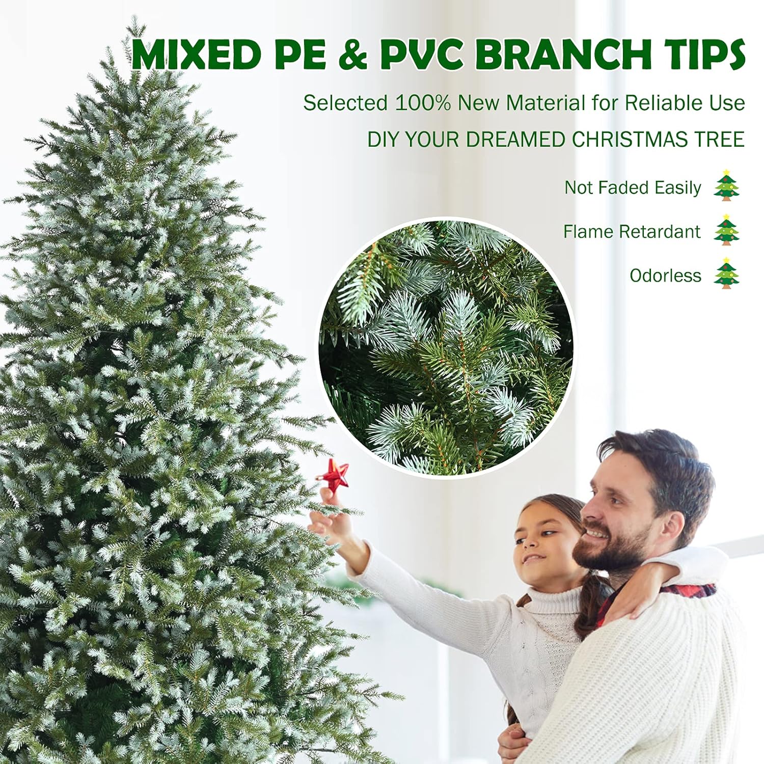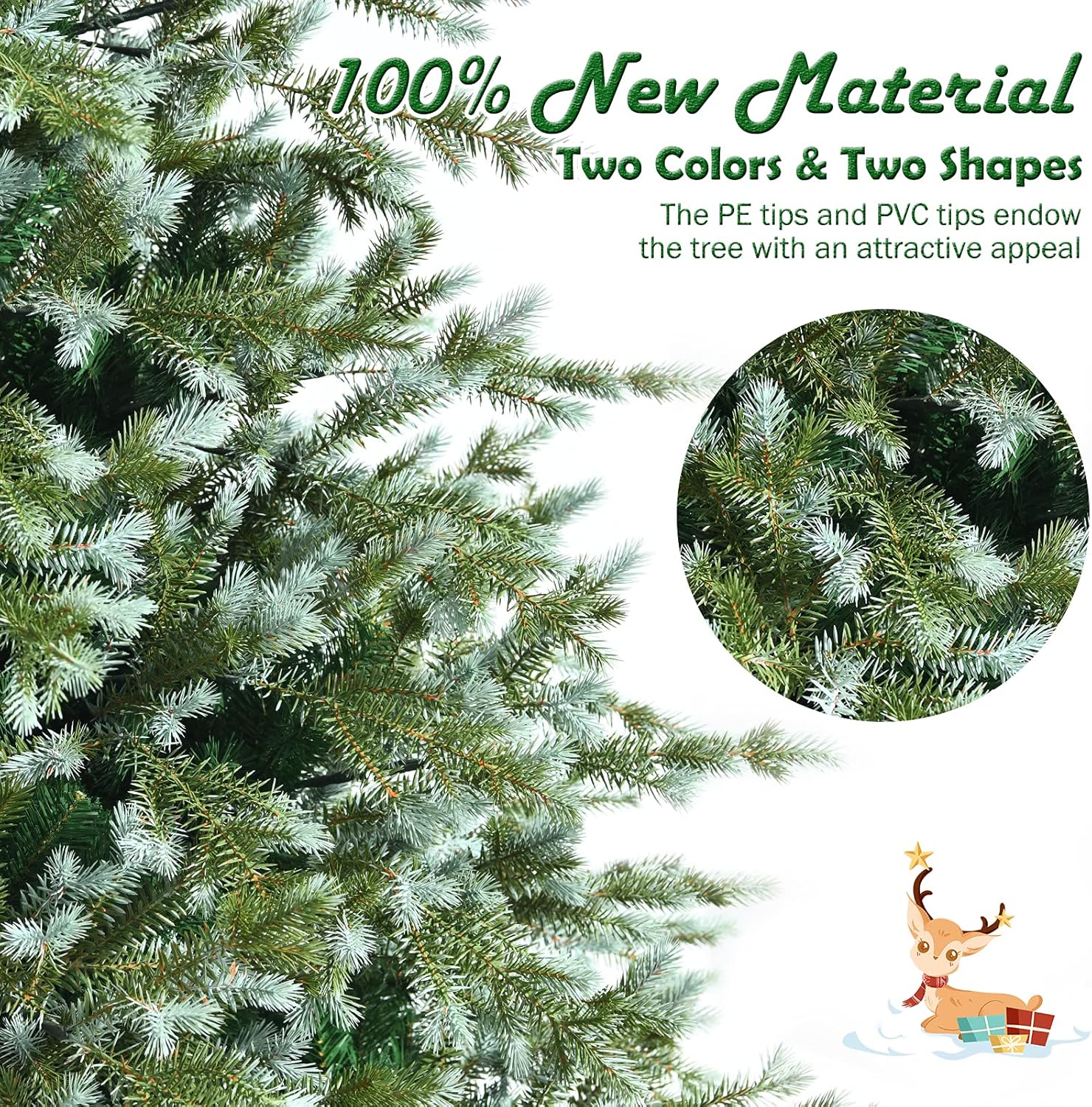Goplus 8ft Artificial Christmas Tree, Feel Real Unlit Hinged Xmas Spruce Tree w/ 1658 Mixed PE & PVC Branch Tips, Metal Stand, Wintry Indoor Decoration for Holiday Festival