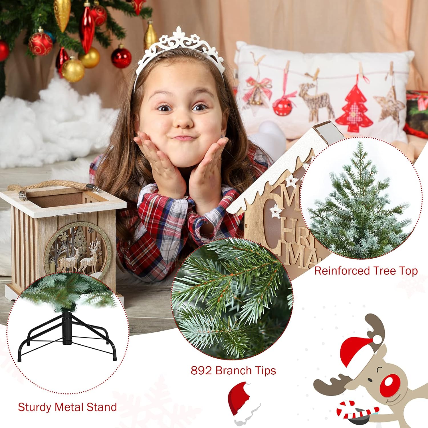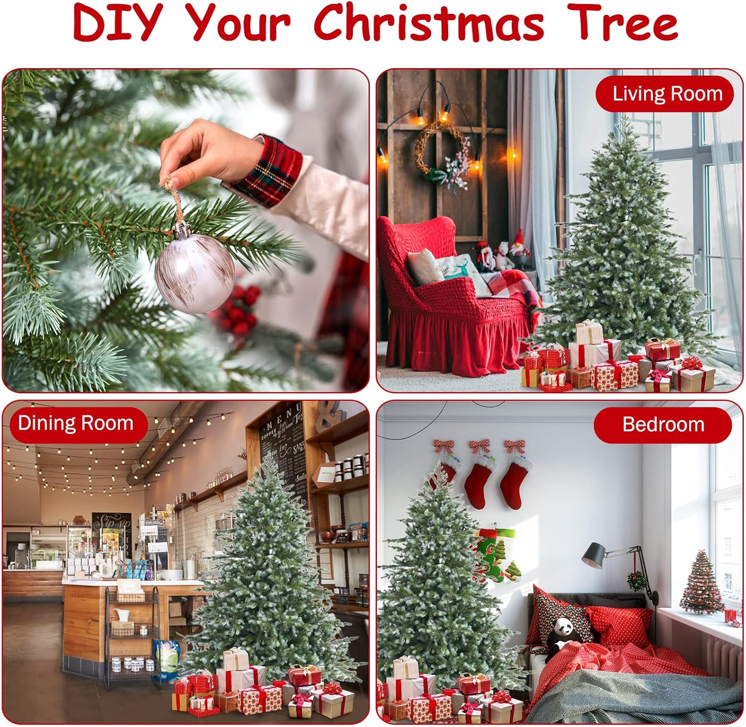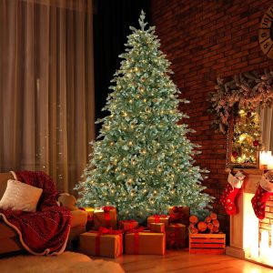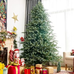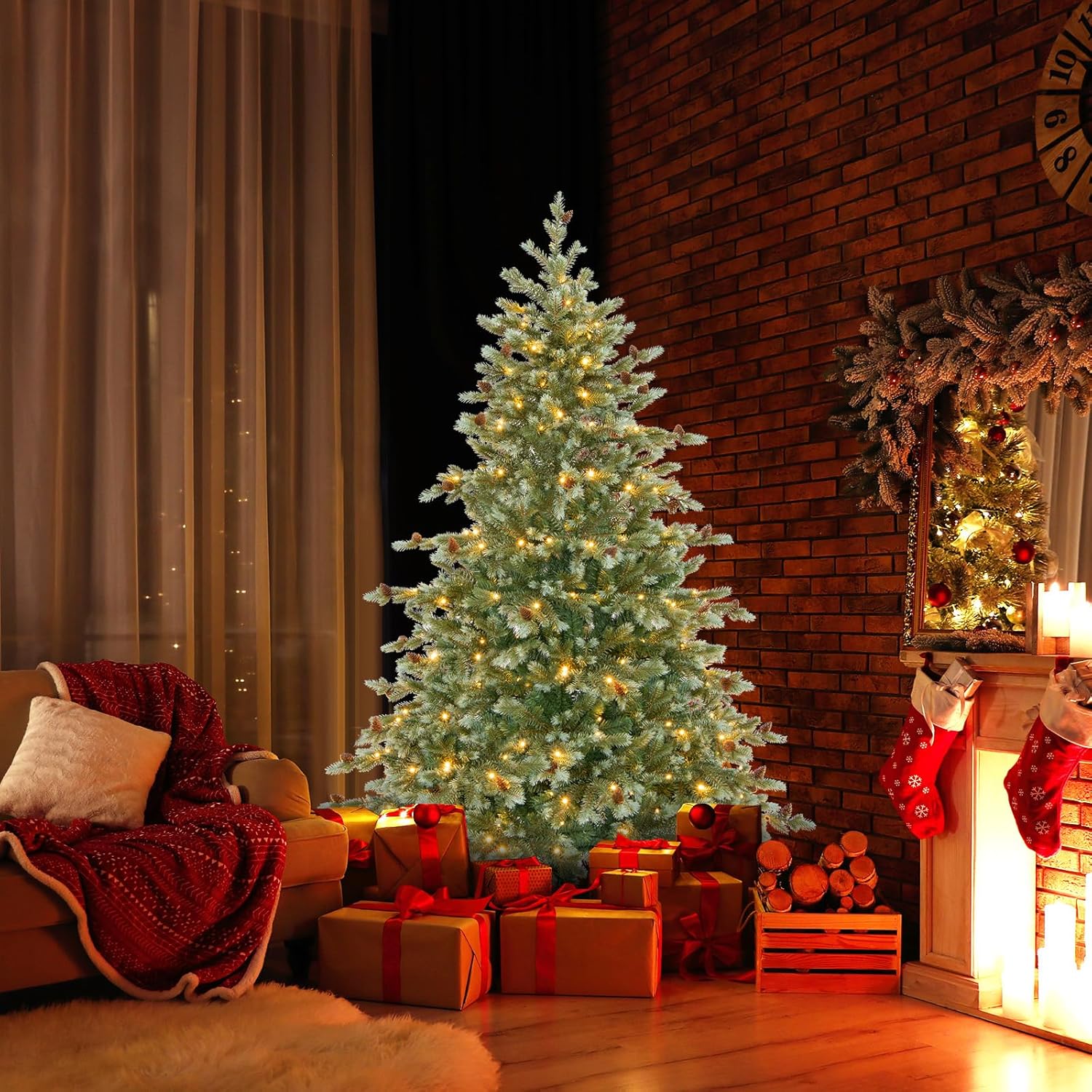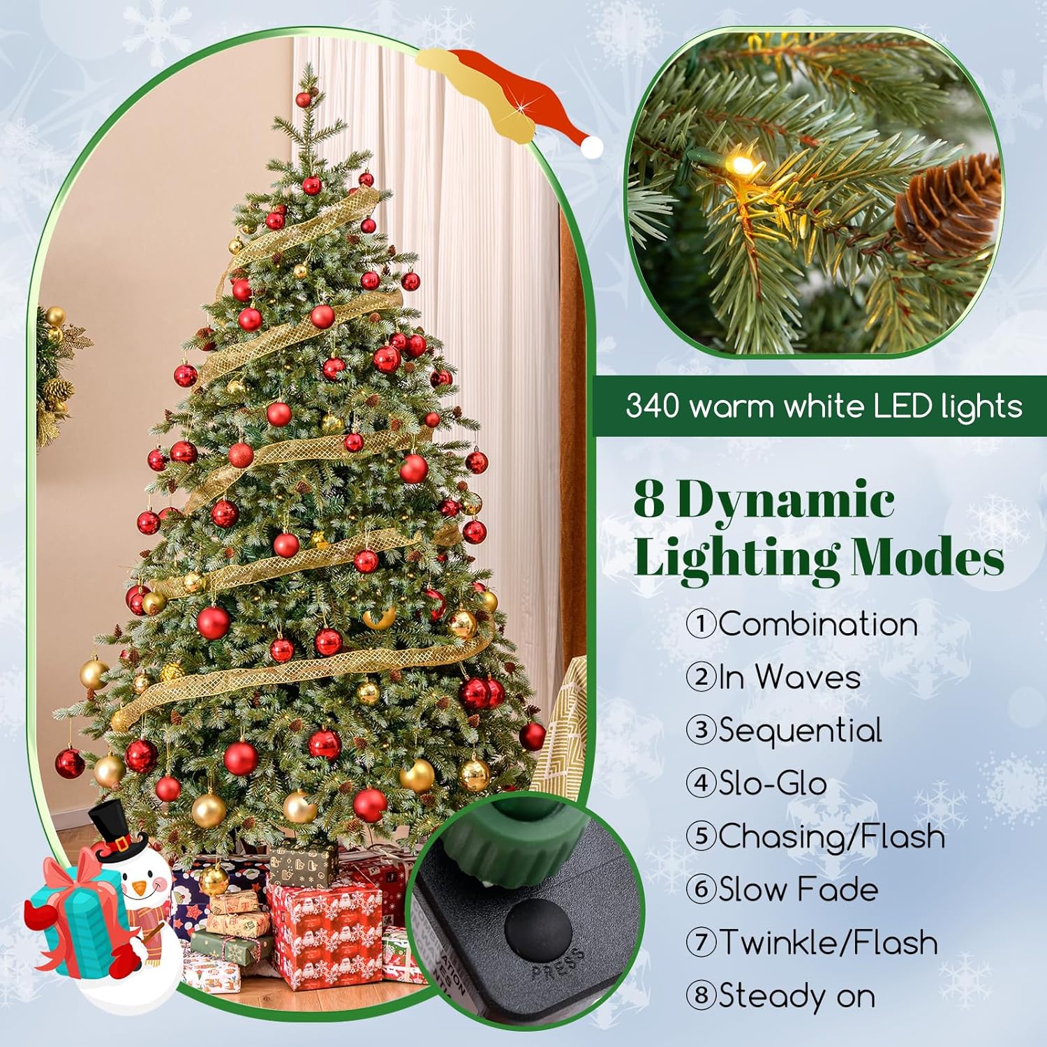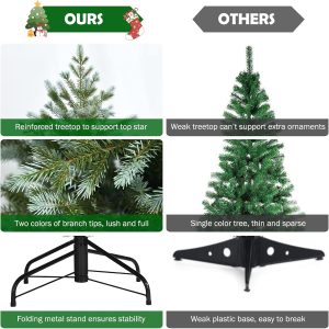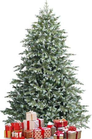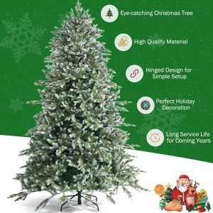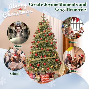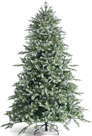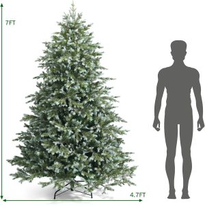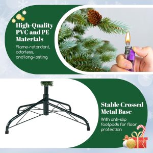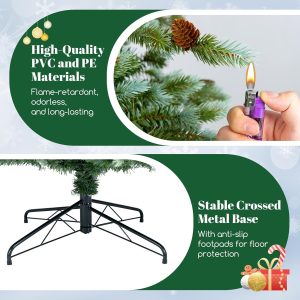 Goplus 8ft Artificial Christmas Tree, Feel Real Unlit Hinged Xmas Spruce Tree w/ 1658 Mixed PE & PVC Branch Tips, Metal Stand, Wintry Indoor Decoration for Holiday Festival