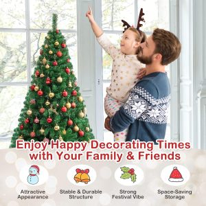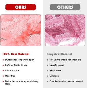 - Flame-Retardant PVC Material: Made from high-quality PVC material, this artificial Christmas tree is flame-retardant, non-odor, and non-allergenic, providing a safe option for your home. The fake leaves are crack-resistant and require no maintenance, ensuring long-term use.