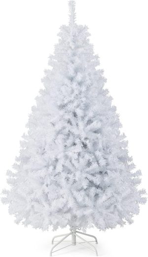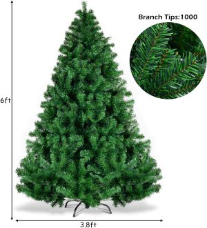 - Sturdy & Stable Metal Base: The full-bodied Christmas tree is securely supported by a sturdy crossed metal base, connected to the trunk with 3 reinforced screws for exceptional sturdiness and stability. Non-slip footpads on the bottom ensure that your floors are protected from scratches.