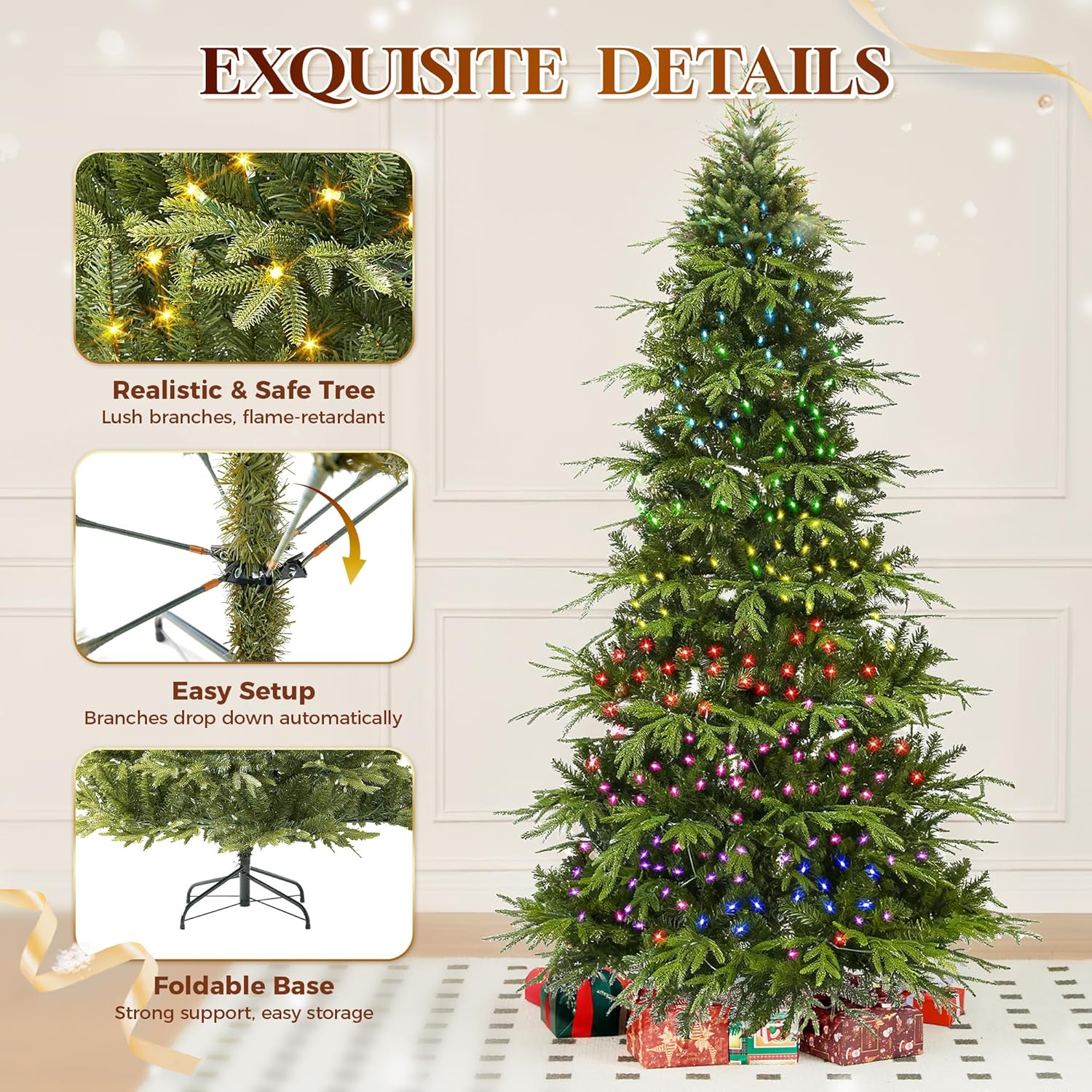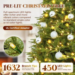 HOLLO STAR 12 ft Prelit Christmas Tree with 1800 LED Lights, App Control, Aspen Artificial Christmas Tree, Multi-Color RGBW Lights, 8334 PE & PVC Branch Tips, for Villa, Mall, Party