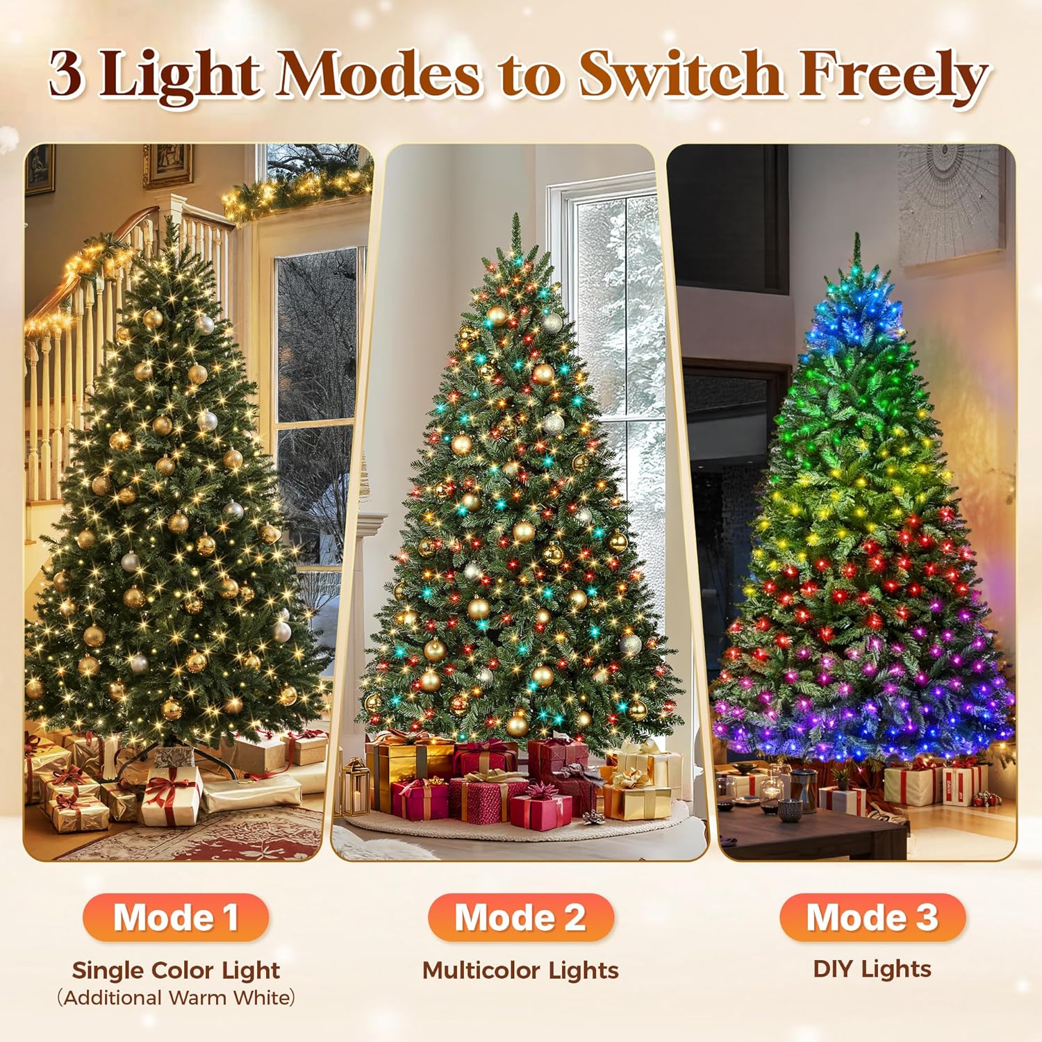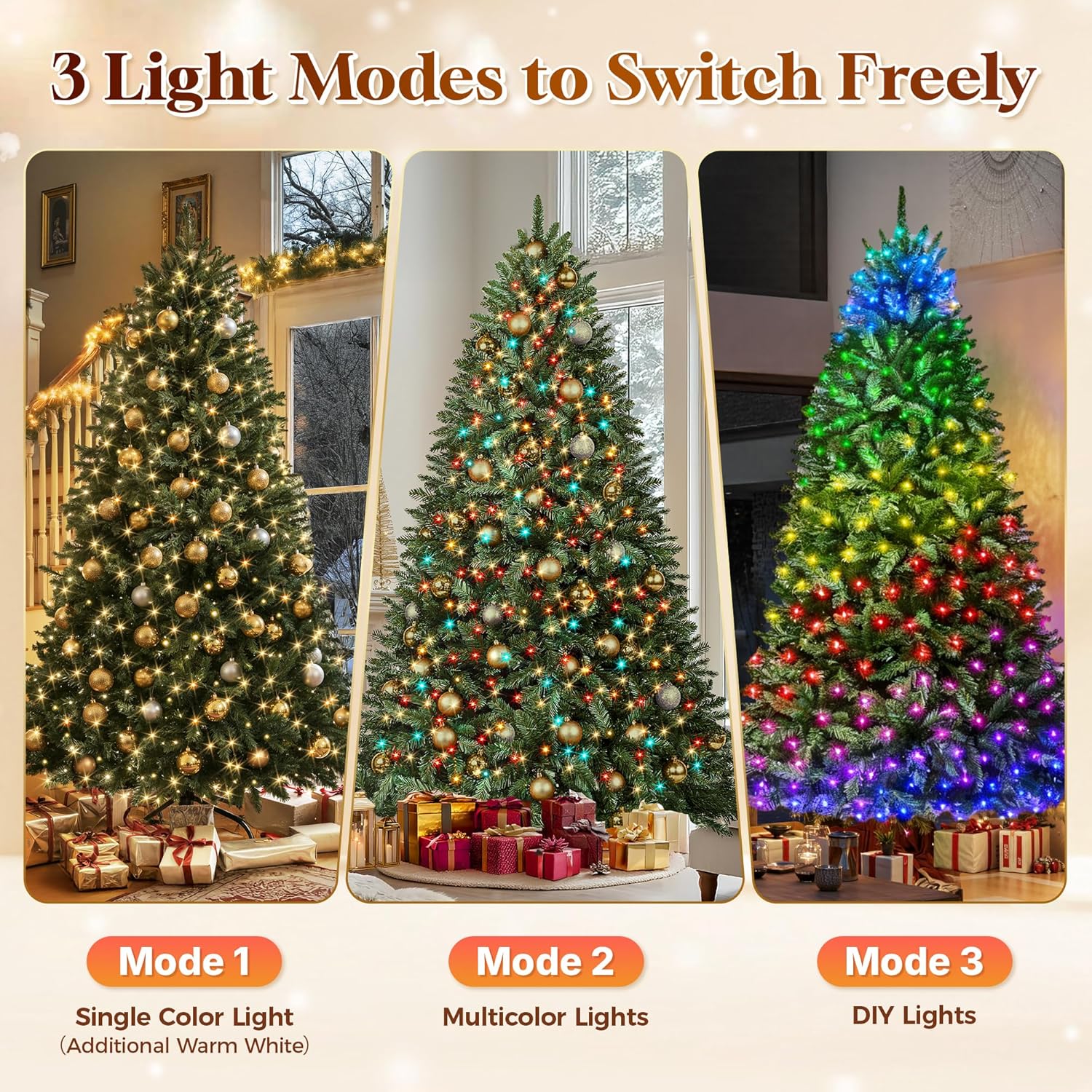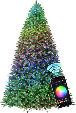 HOLLO STAR 6 ft Prelit Christmas Tree with 270 LED Lights, App Control, Artificial Christmas Tree with Multi-Color RGBW Lights, 1072 Branch Tips, Metal Base, Easy to Assemble, for Home, Party