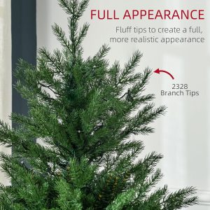 HOMCOM 6ft Tall Prelit Artificial Christmas Tree Holiday Décor with 2328 Branches, 400 Warm White LED Lights, Auto Open, 8 Light Modes
