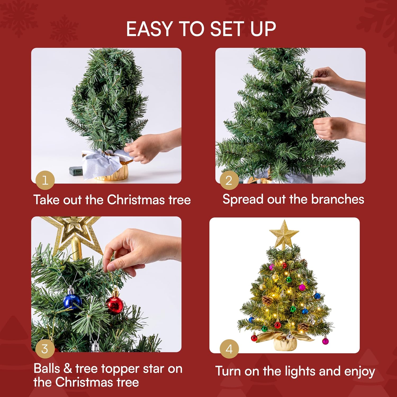 - Includes All Items You need to Build Your Own Tabletop Christmas tree! Best 24” Table Top Mini Christmas Tree to for your Coming Christmas Day.