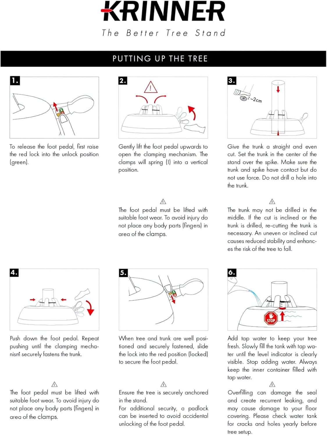 - Easy Foot Pedal Locking: Place your tree in the stand, press the foot pedal until secure, then slide into lock position – no tools or screws needed.