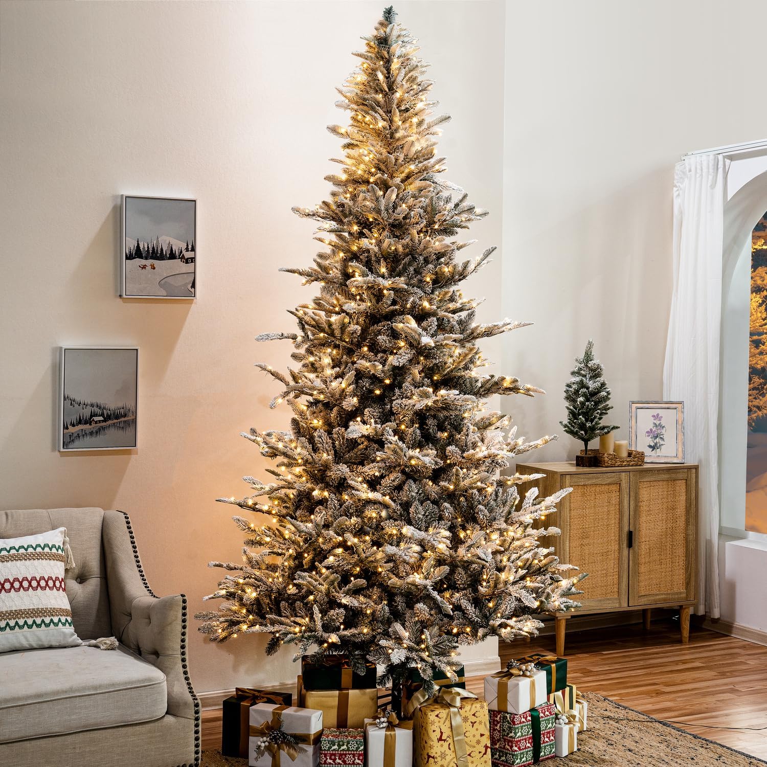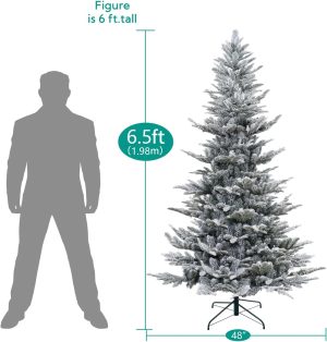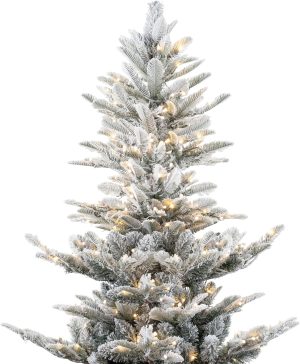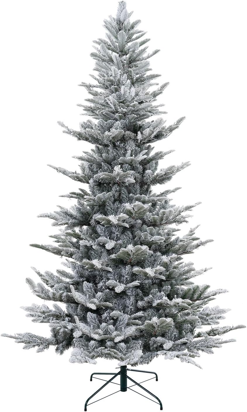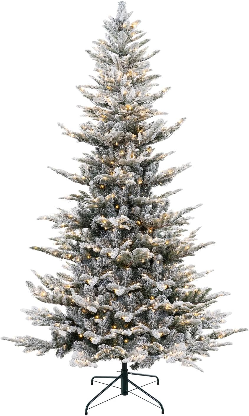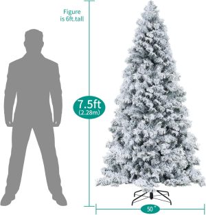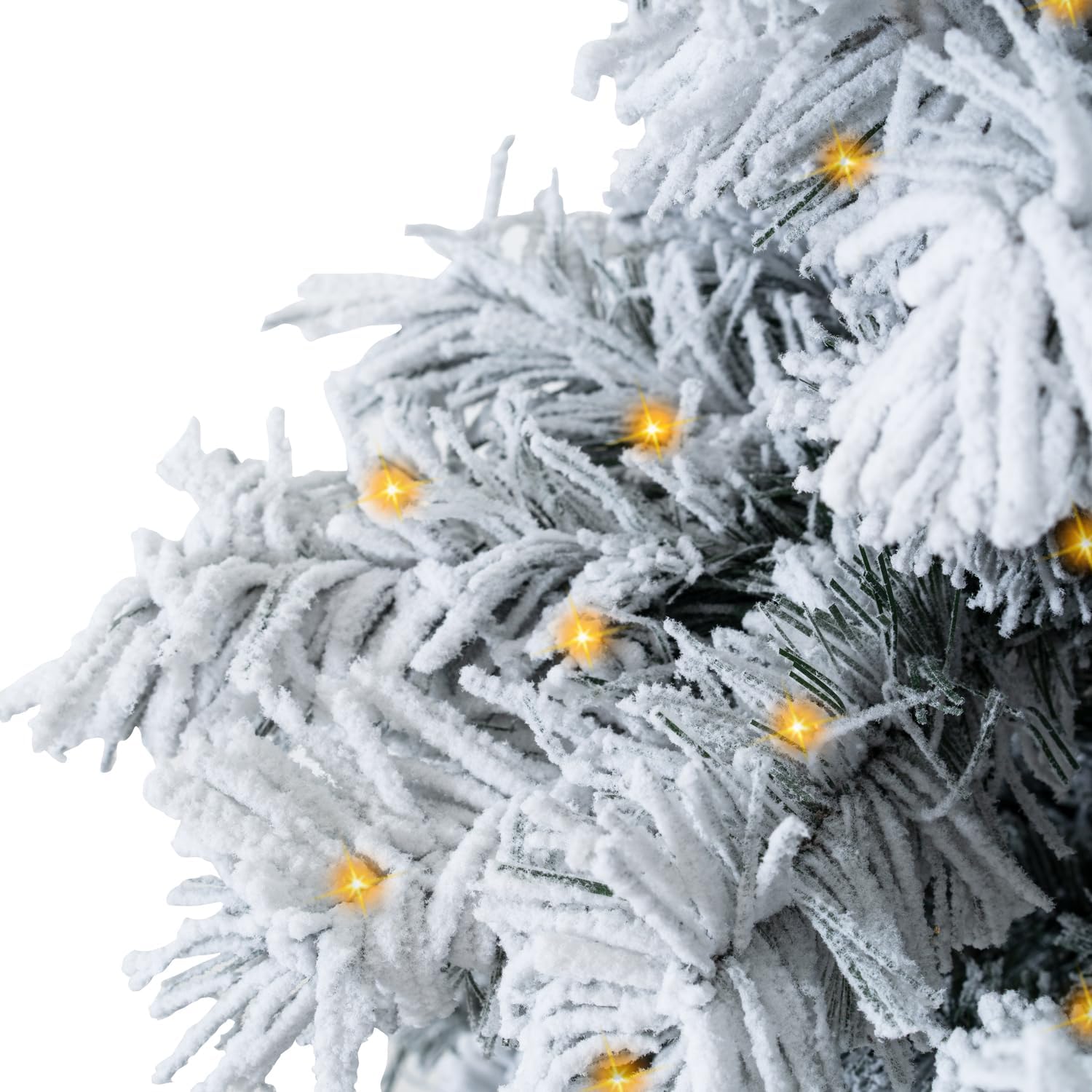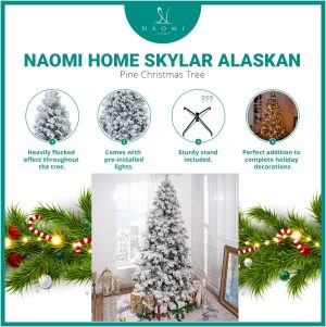 Naomi Home 7.5ft Snow Flocked Christmas Tree with Lights, Realistic Frosted Christmas Tree Prelit with 892 Branch Tips, 550 Warm Lights and Metal Stand, Aritificial Xmas Tree