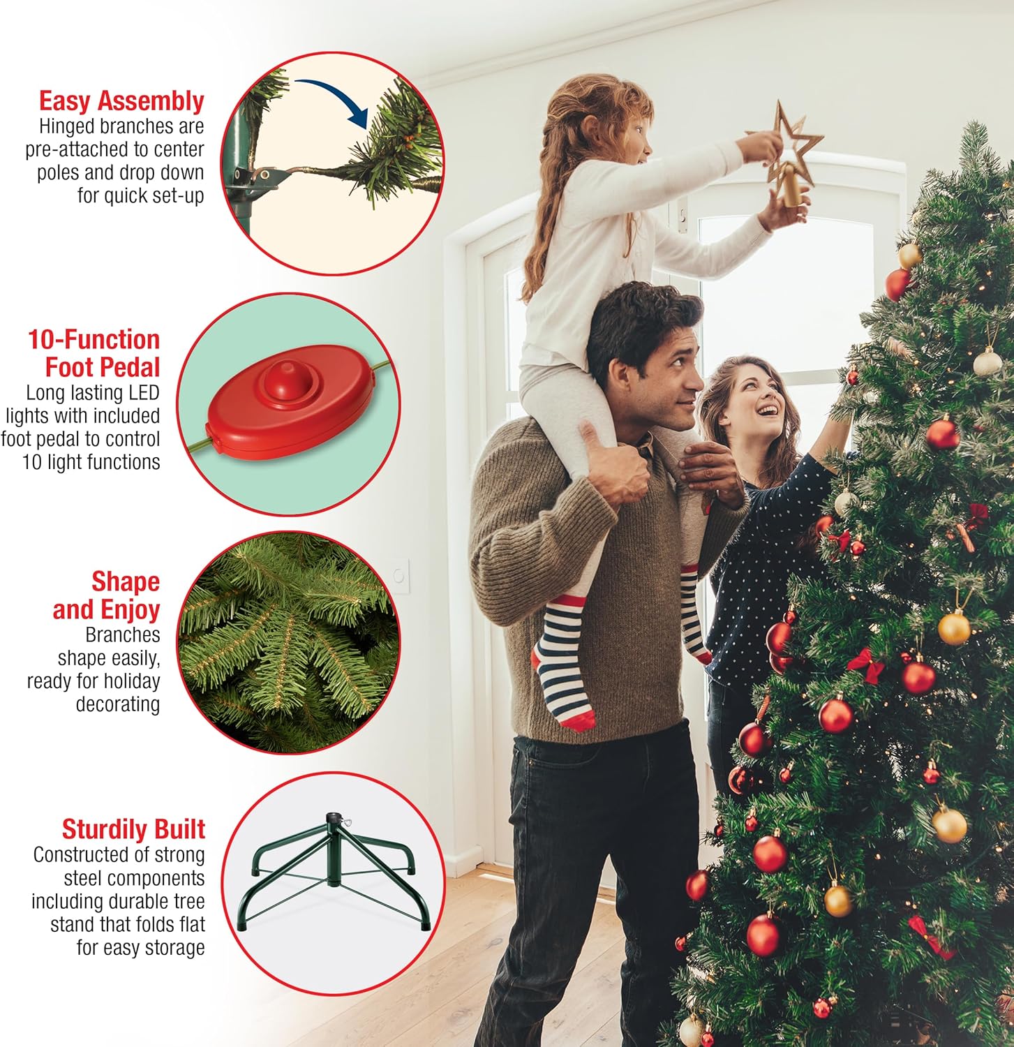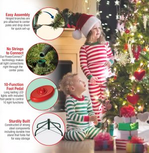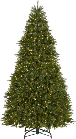 National Tree Company 10 ft Pre-Lit Dunhill Fir Full Artificial Christmas Tree, 1,200 LED Lights, 5,090 Tips, Foot Pedal, 10 Light Functions, Includes Stand, Green