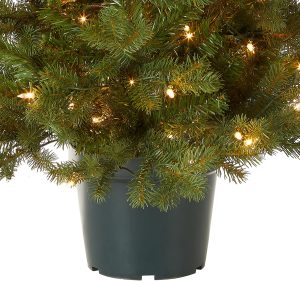 National Tree Company 3 ft Pre-Lit Hampton Spruce Mini Artificial Christmas Tree, 100 Clear Lights, 579 Tips, Green Growers Pot