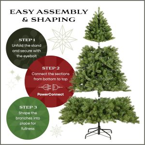 National Tree Company 6.5 ft Pre-Lit Downswept Douglas Fir Slim Artificial Christmas Tree, 300 LED Lights, 640 Tips, PowerConnect, Foot Pedal, 10 Light Functions, Includes Stand, Green