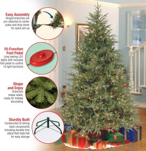 - Constructed with sturdy, high quality materials, hypo-allergenic, fire-resistant needles, this tree is built to bring holiday cheer for years to come. Includes a durable metal base.