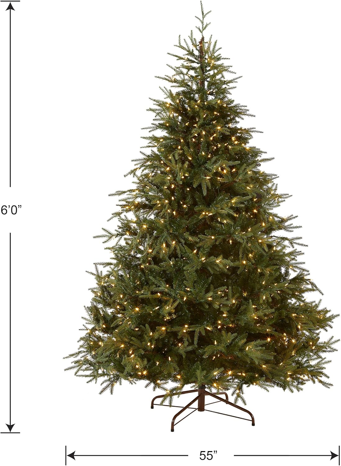 - This Frasier Grande Full Pre-Lit Artificial Green Christmas Tree is 6 feet tall with a 55 inch base diameter. Featuring hundreds of 'Feel Real' individually crafted branch tips to create full bodied branches, this tree is designed to look and feel lifelike.