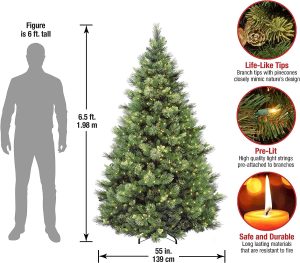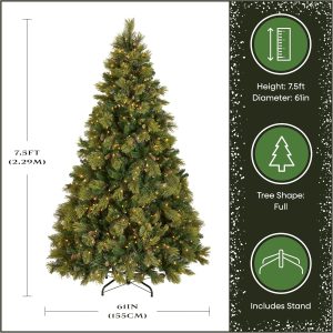 National Tree Company 7.5 ft Pre-Lit Carolina Pine Artificial Christmas Tree, 750 Clear Lights, 1,399 Tips, Includes Stand, Green