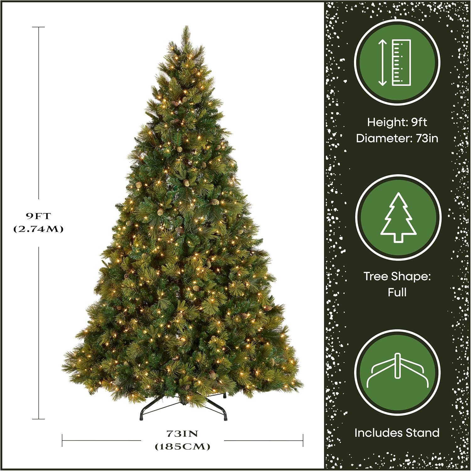 National Tree Company 7.5 ft Pre-Lit Carolina Pine Artificial Christmas Tree, 750 Clear Lights, 1,399 Tips, Includes Stand, Green