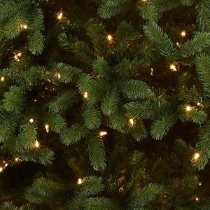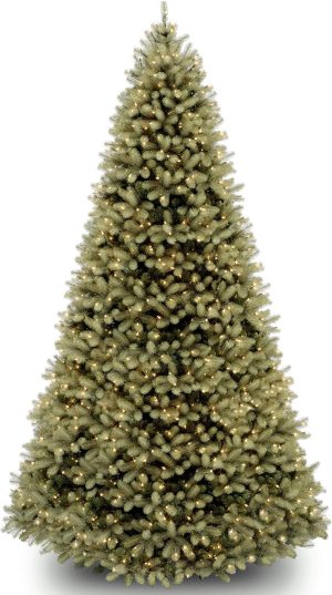 - This Downswept Douglas Fir Full Pre-Lit Artificial Green Christmas Tree is 7.5 feet tall with a 59 inch base diameter. Featuring hundreds of 'Feel Real' individually crafted branch tips to create full bodied branches, this tree is designed to look and feel lifelike.