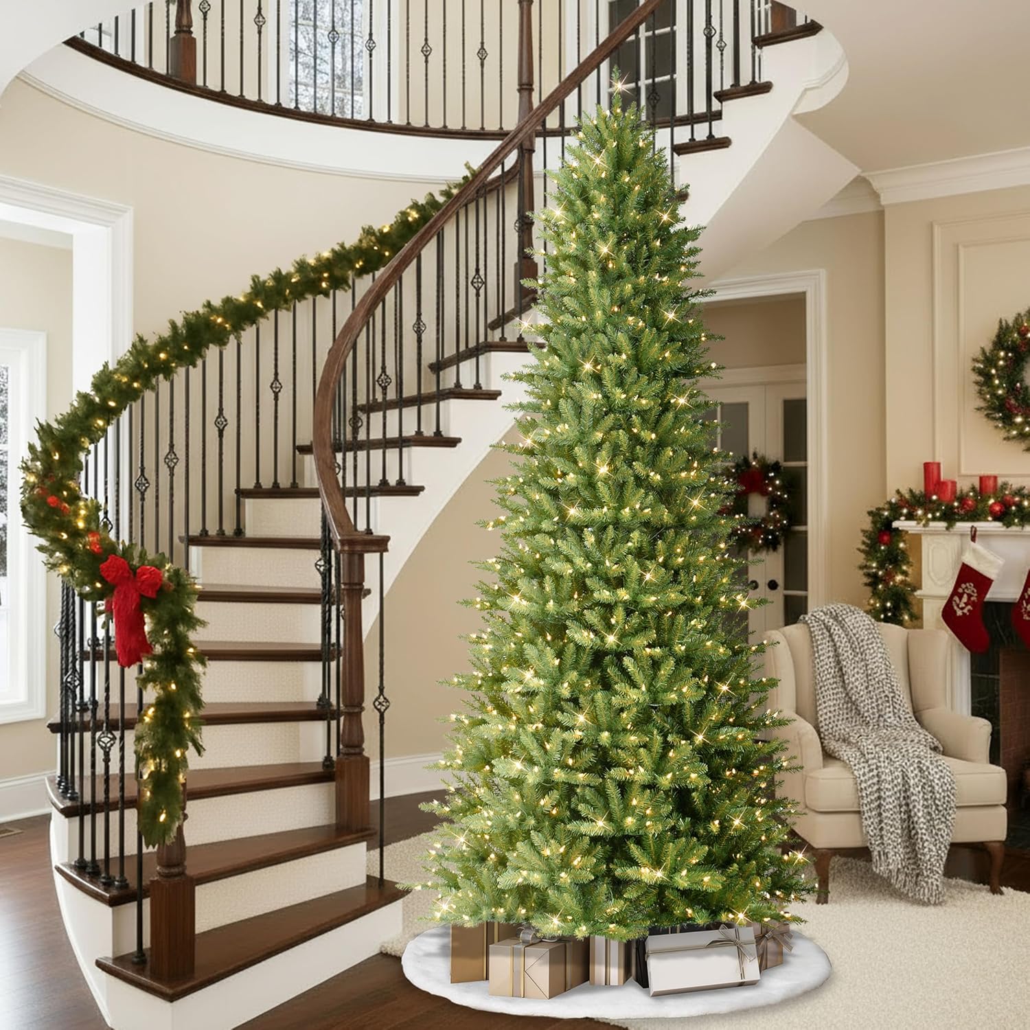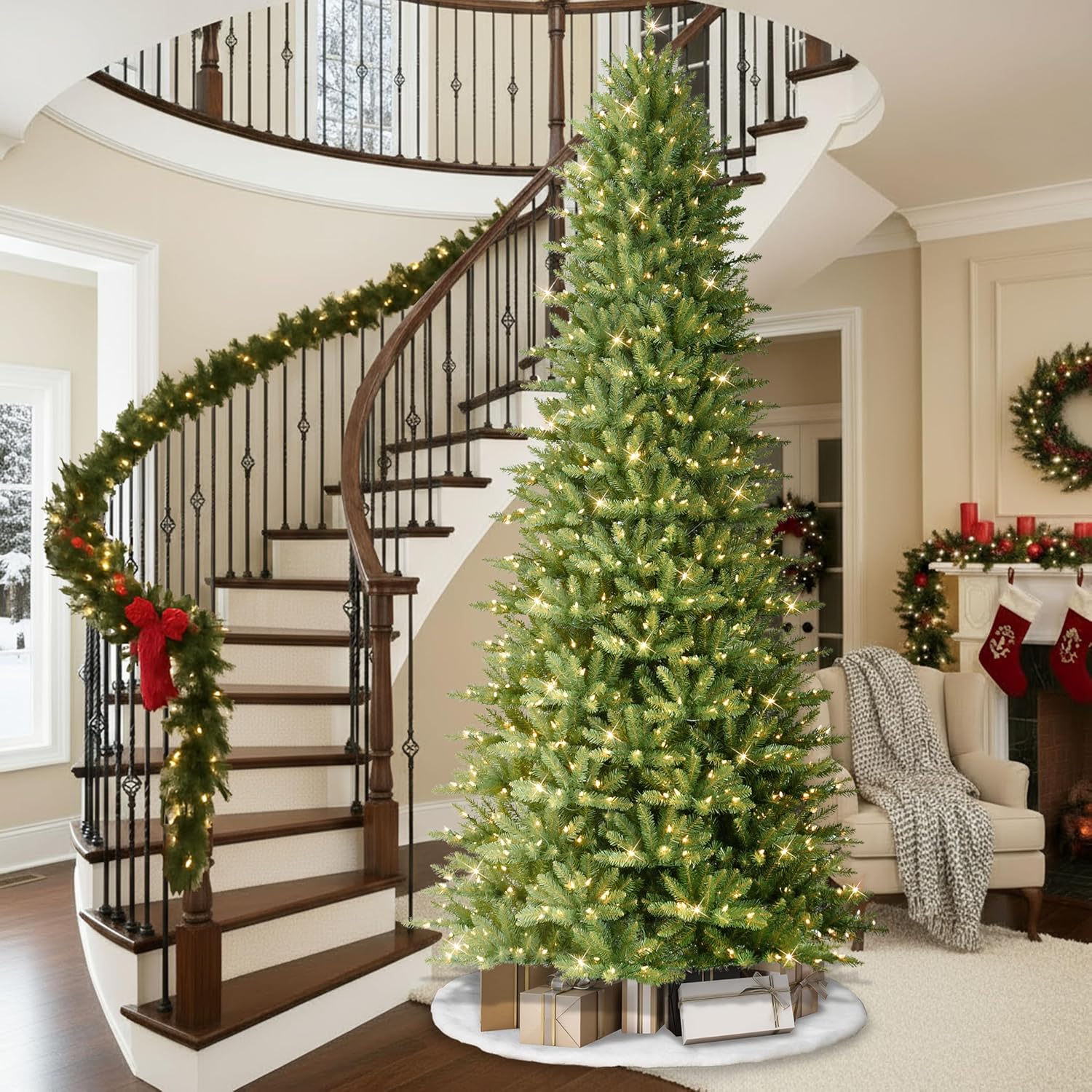 - Durable Metal Stand: Includes a sturdy, foldable metal stand with scratch-proof rubber feet for unmatched stability and long-lasting use with your prelit artificial Christmas tree.