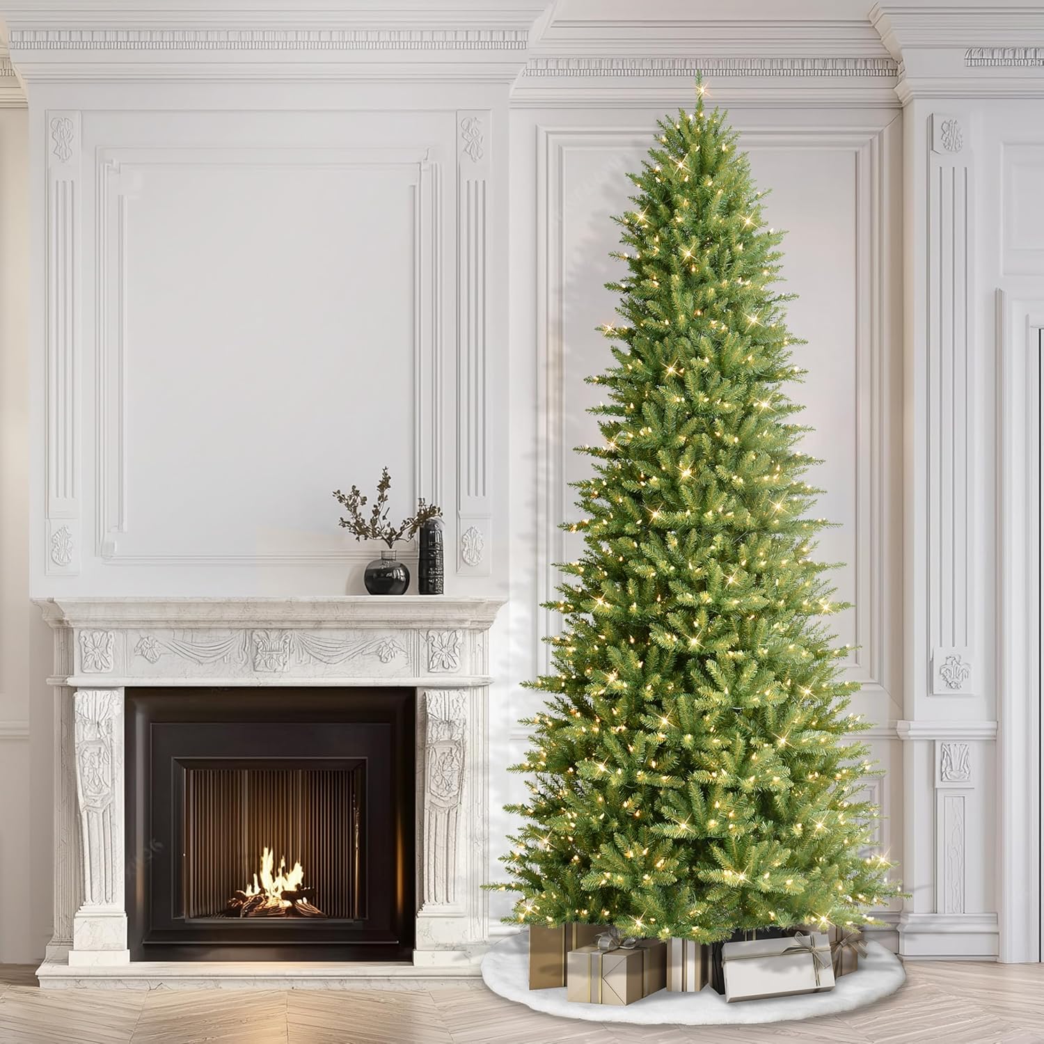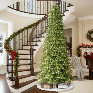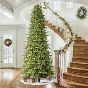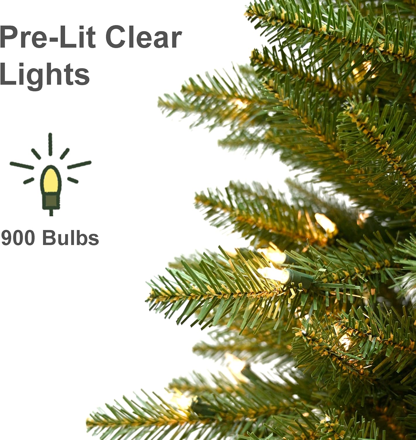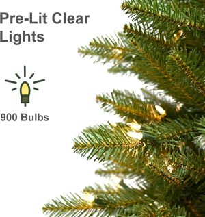 - Pre-Strung Warm White Lights: Professionally hand-strung with 900 UL-certified clear lights for even coverage; if one bulb fails, others stay lit, creating a worry-free festive glow for your prelit artificial Christmas tree.