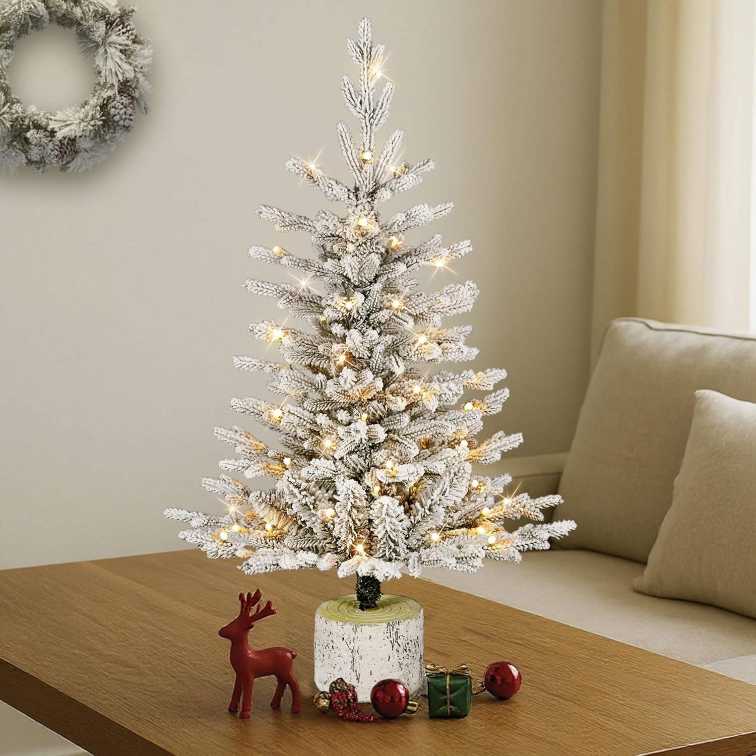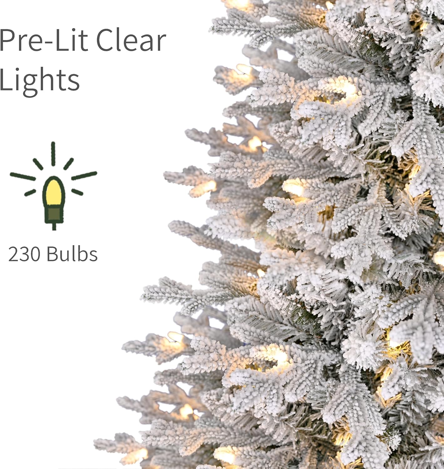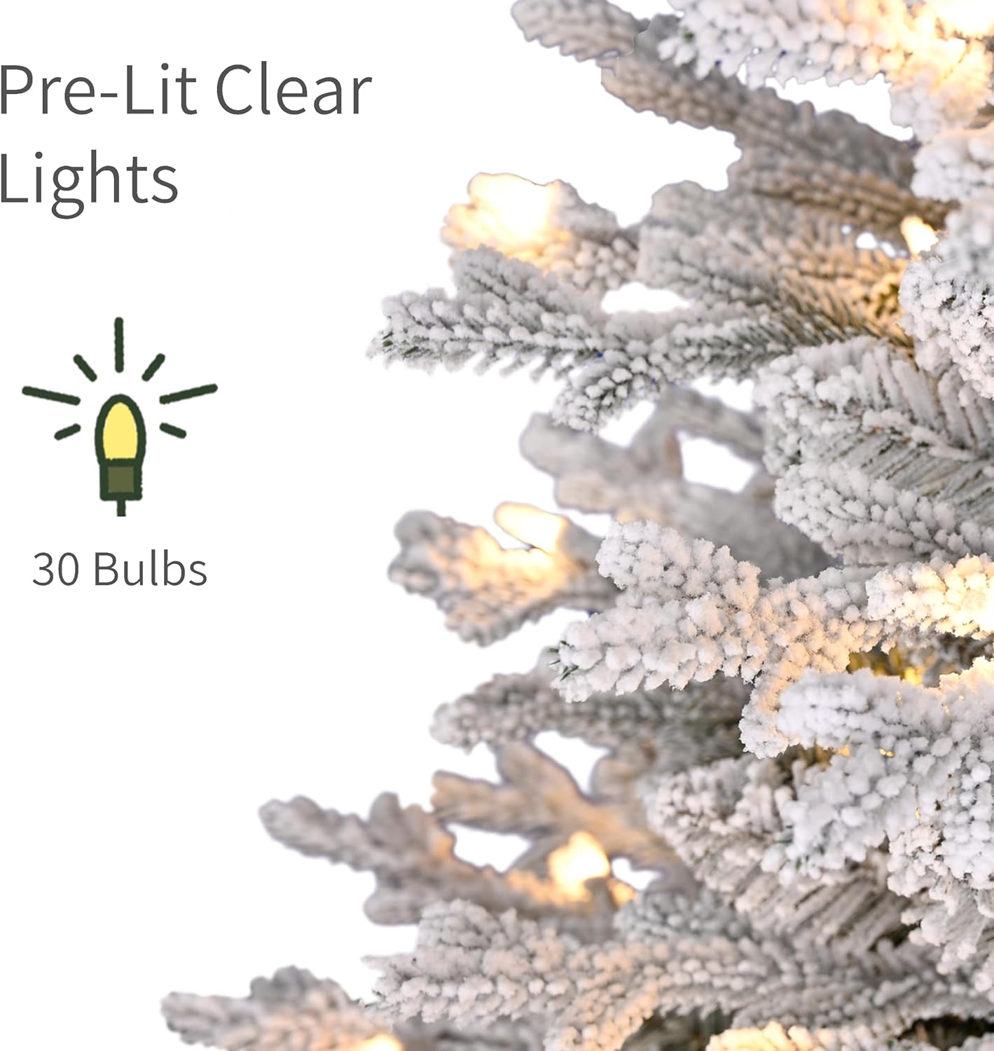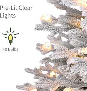 - Pre-Strung Warm White Lights: Professionally hand-strung with 120 LED warm white lights for even coverage; if one bulb fails, others stay lit, creating a worry-free festive glow for your snow flocked prelit artificial Christmas tree