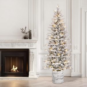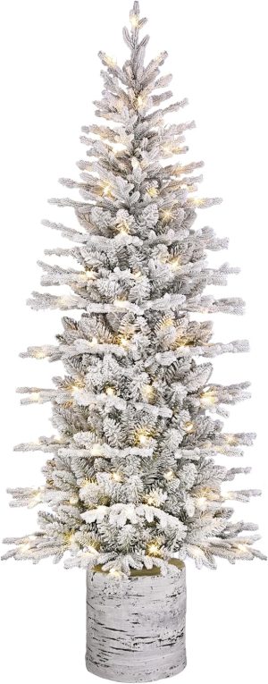 - Durable Potted Stand: The Christmas tree sits securely in a pot, providing unmatched stability and long-lasting use for your flocked pre-lit artificial Christmas tree