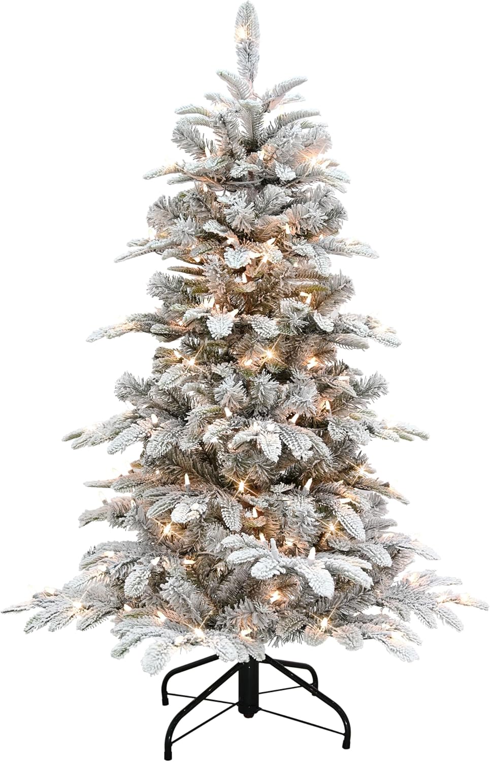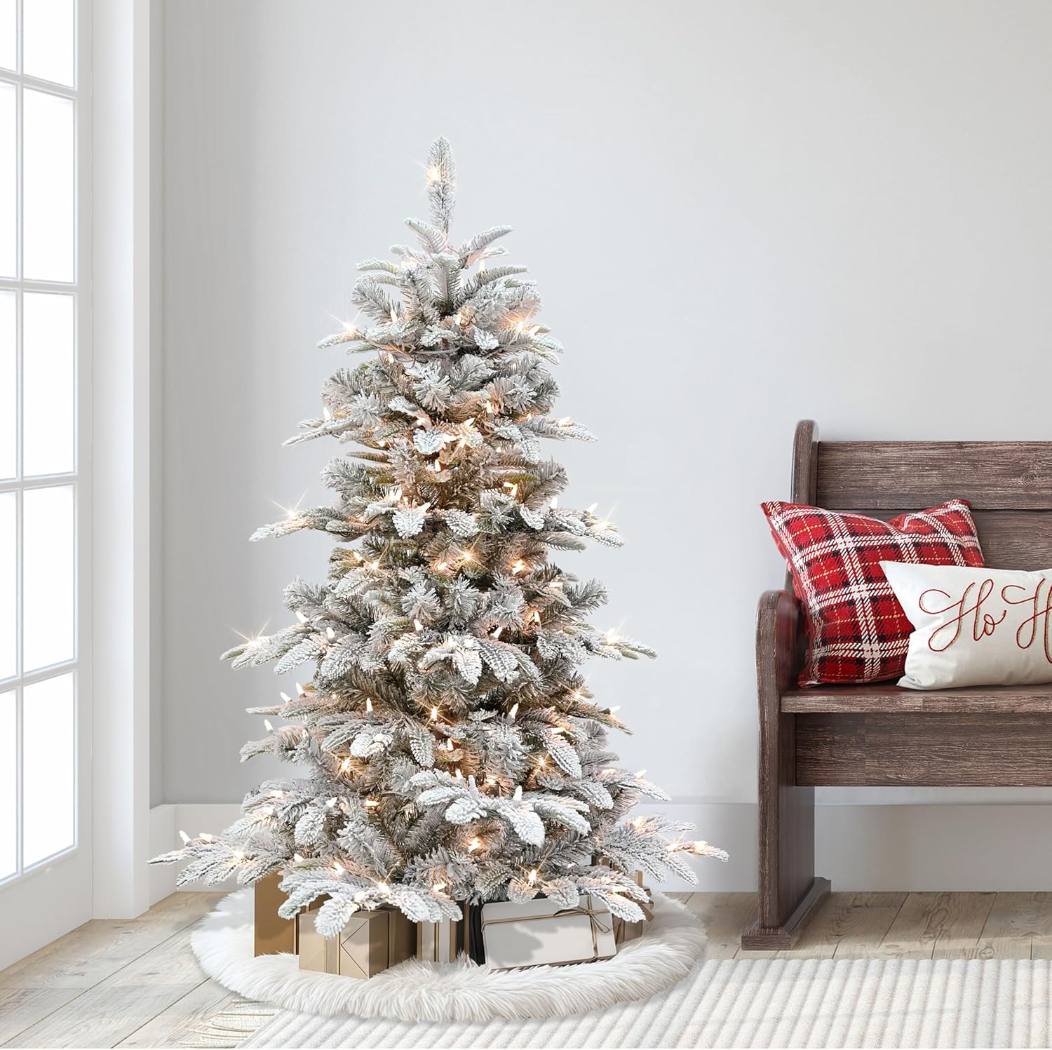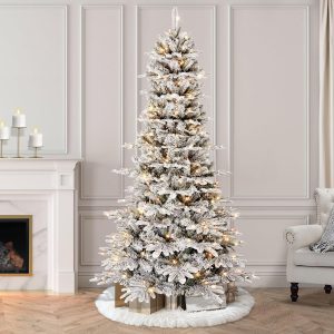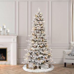 - Quick and Easy Assembly: Hinged branches and letter-coded sections let you assemble, fluff, and decorate in minutes, ideal for hassle-free prelit flocked Christmas tree decorations setup