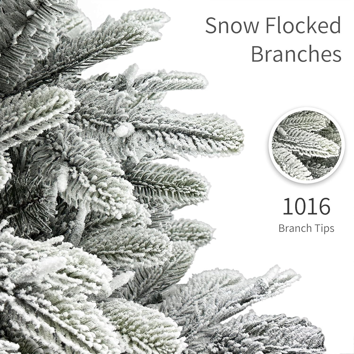 - Realistic Flocked Decorative Branch Tips: Features 1016 molded PVC interior branch tips for a lush, snow-kissed natural silhouette, perfect for your Christmas tree decorations and realistic flocked decorative displays, adding a winter white snow appeal
