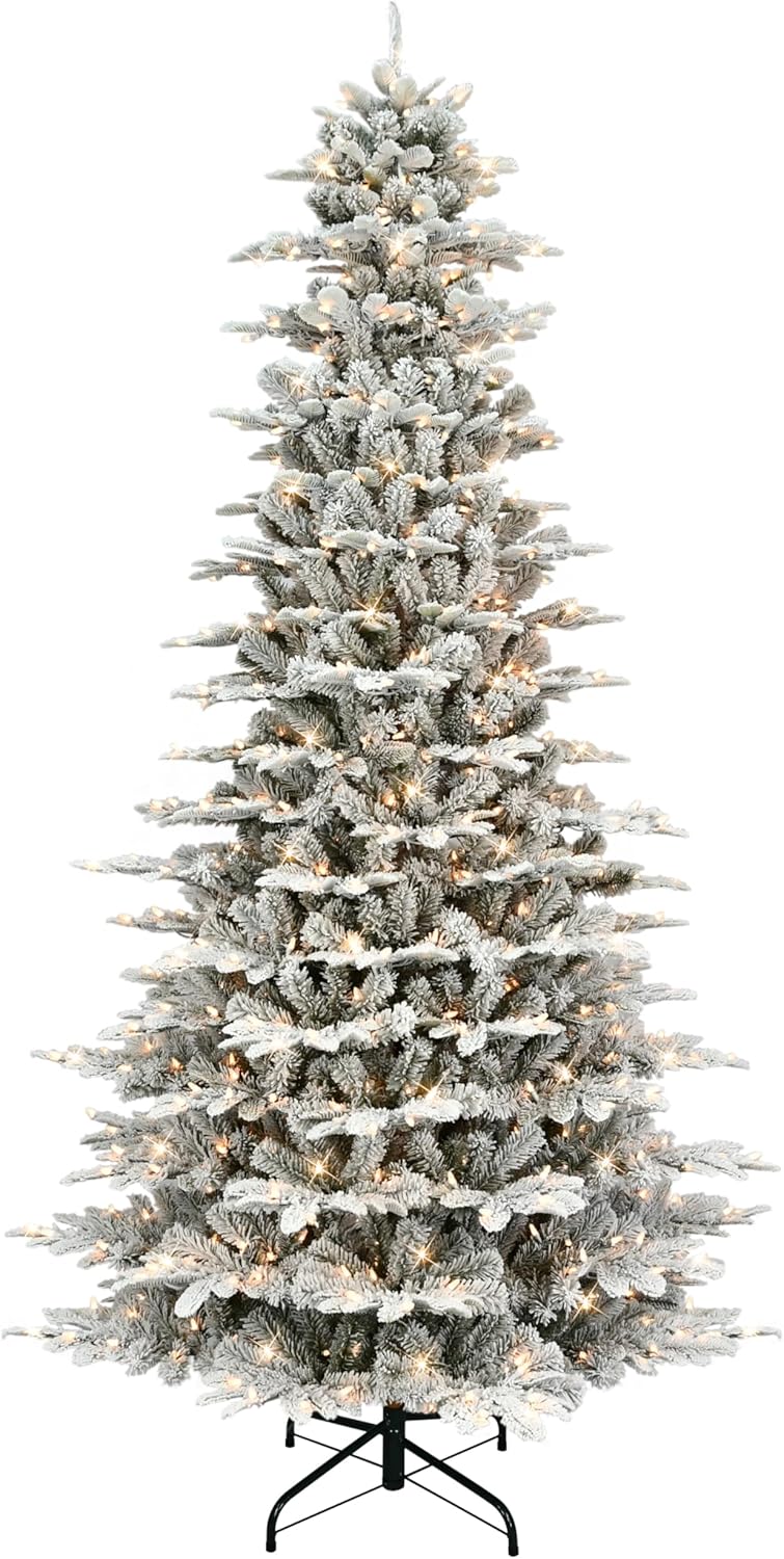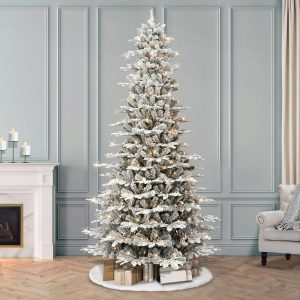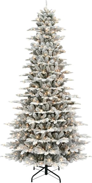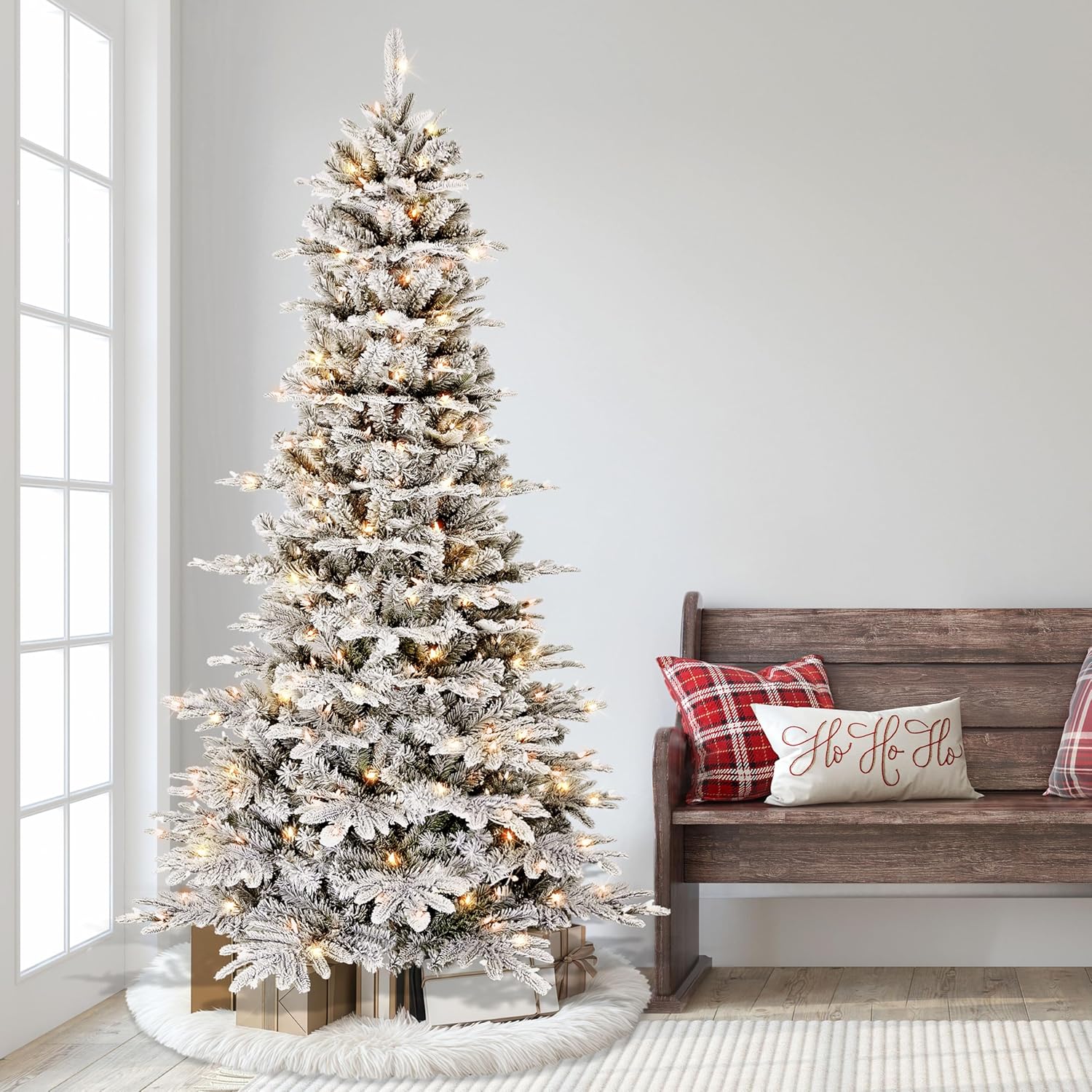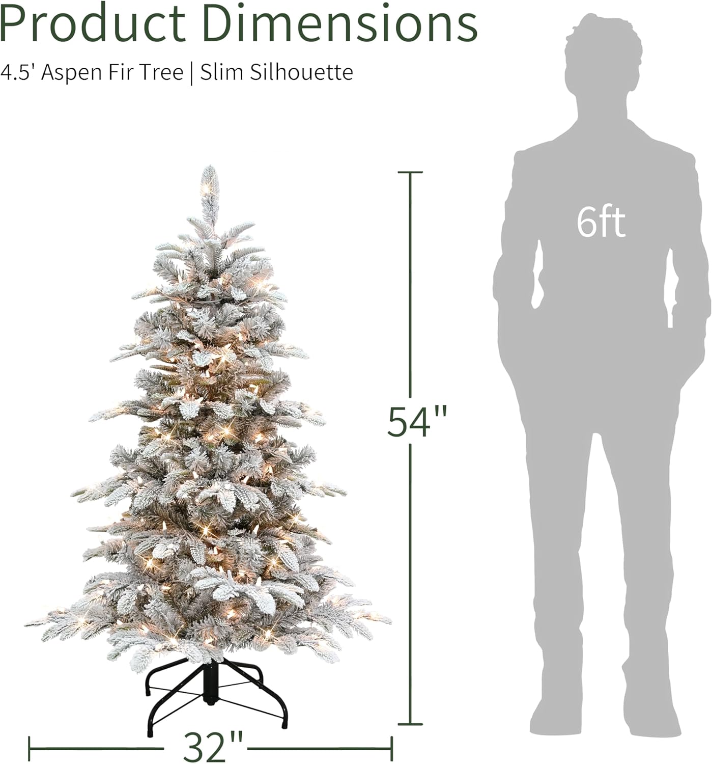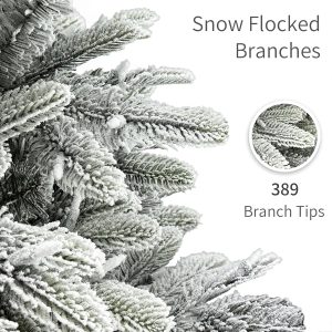- Pre-Strung Clear Lights: Professionally hand-strung with 450 clear lights for even coverage; if one bulb fails, others stay lit, creating a worry-free festive glow for your snow flocked prelit artificial Christmas tree