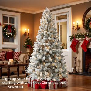 - SNOW FLOCKED: This white snow flocked Prelit Christmas Tree With lights has 874 dense branches, each branch is covered with white flocking, creating a realistic and full snow scene Christmas tree,Full Christmas tree dimensions: 6ft high, 3.6ft wide