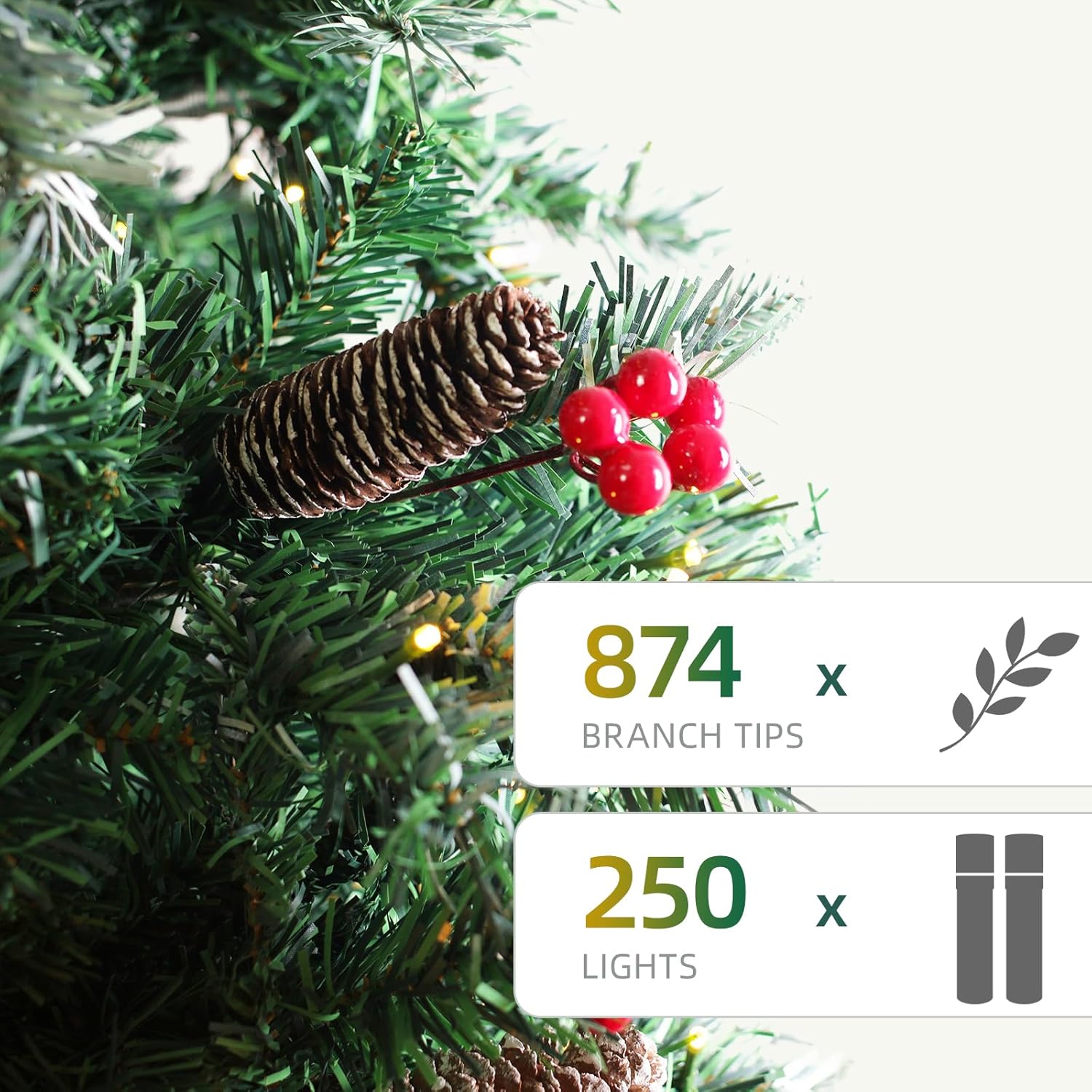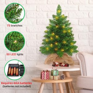 - PRE LIT: This Prelit Artificial Christmas Tree With lights 6ft, with 250 warm LED lights, which can be lit up by plugging in the power supply. The warm light creates a warm holiday atmosphere.
