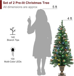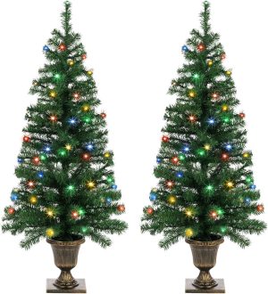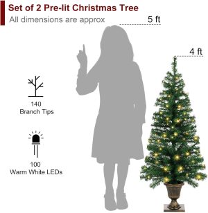 - Pre-Lit Christmas Trees: Pre-strung 100 warm white LED Lights for each tree, it brings the holiday spirit with this beautiful Christmas tree, no need to weave the lights by yourself. Waterproof battery box suit for indoor and outdoor use. 3 X AA batteries not included.