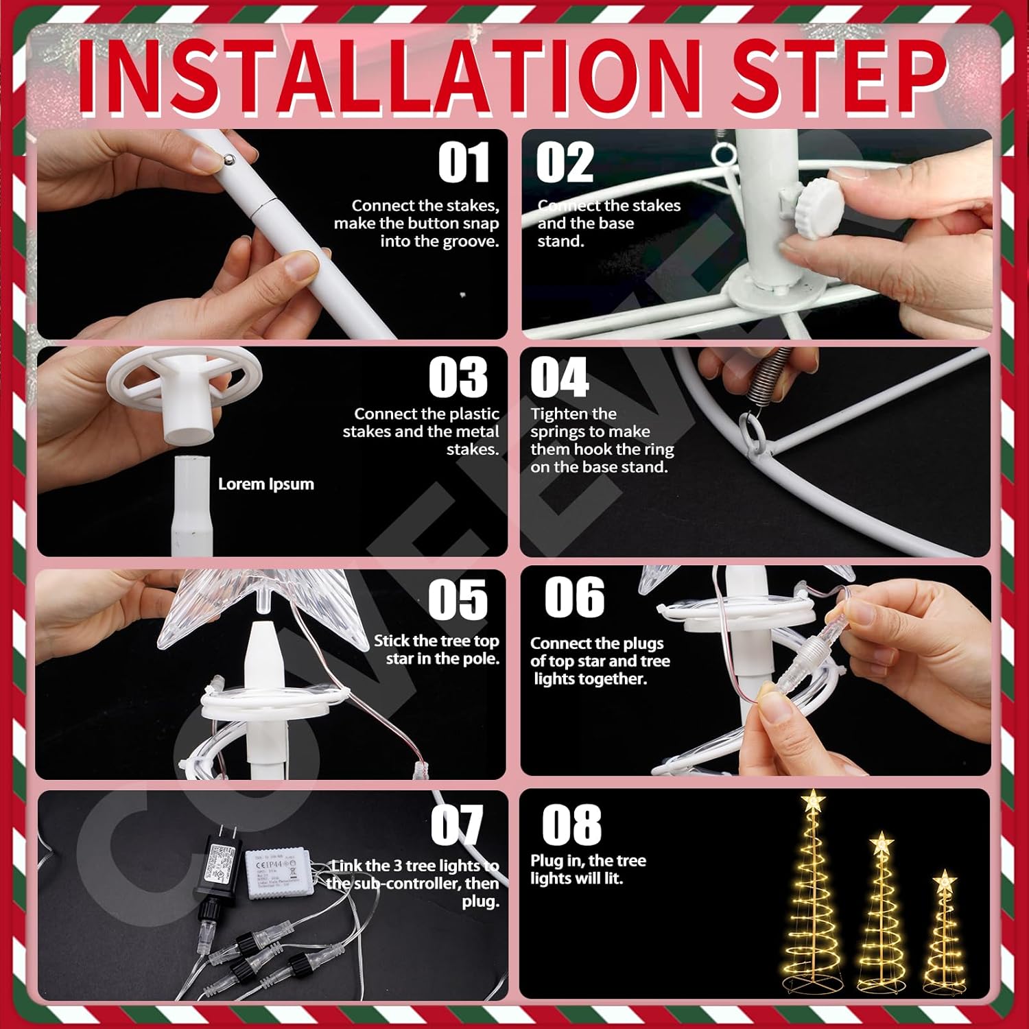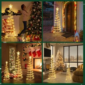 Set of 3 Christmas Decoration Outdoor Spiral Tree, 3/4/5 FT 240 LED Xmas Collapsible Tree Lighted 3D Lights Holiday Display Decorative for Indoor Outdoor Xmas Patio Wedding Decor(Warm White)