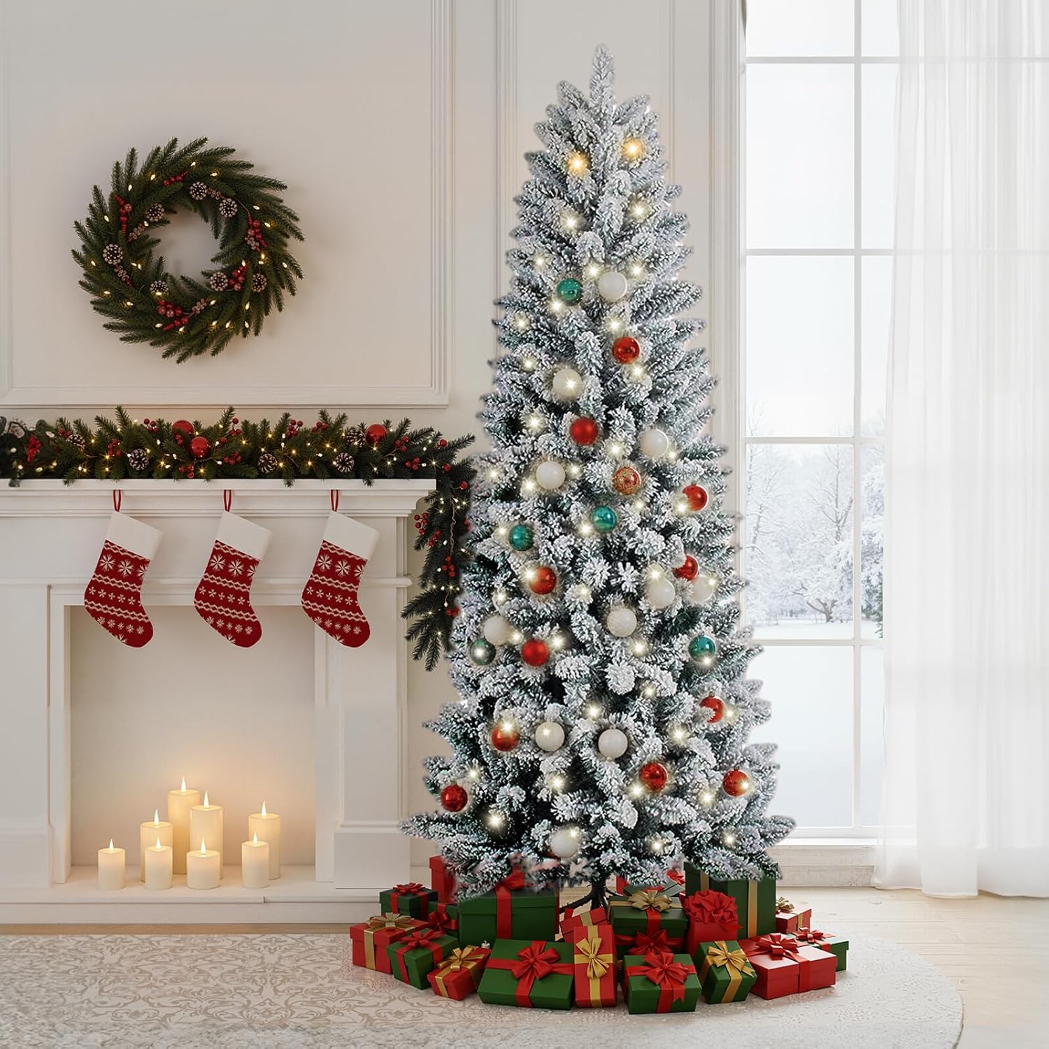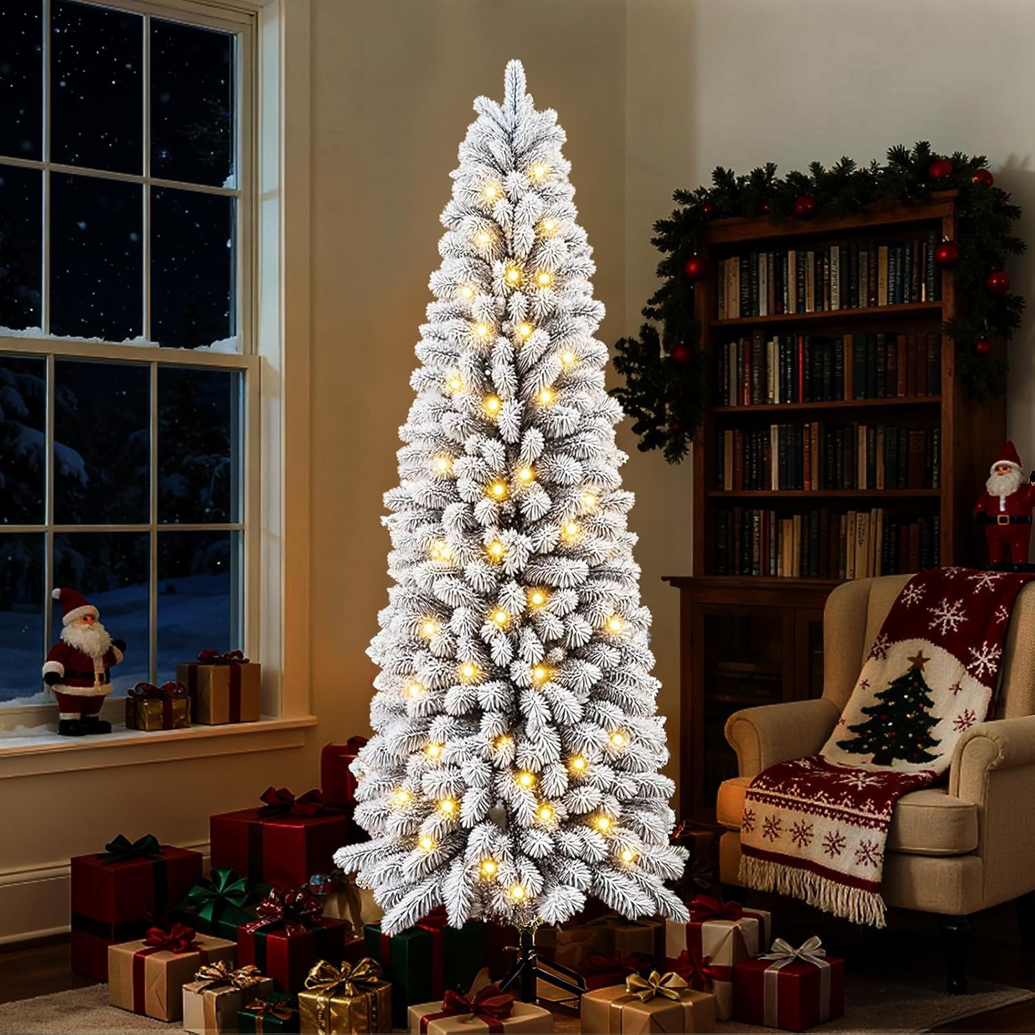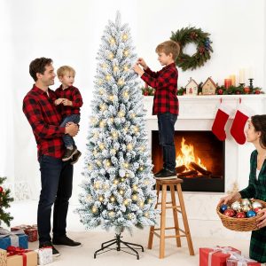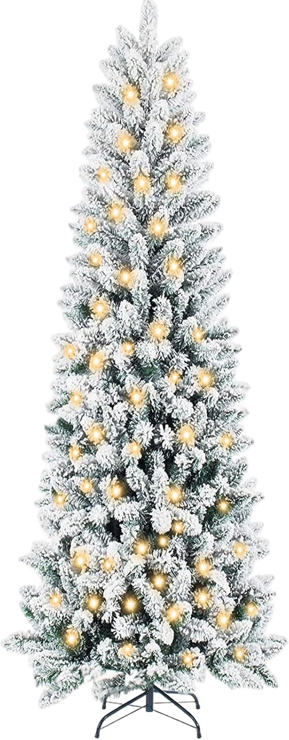 - [Slim Pencil Design] With its sleek pencil silhouette, pencil Christmas trees with lights is expertly crafted to fit snugly into corners, small rooms, and any space where floor area is limited. Perfect for small spaces—bring festive joy to any corner without sacrificing style or floor area.