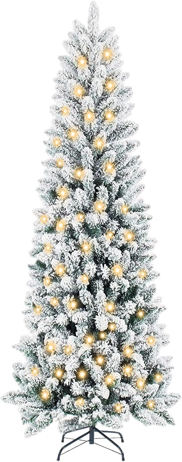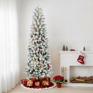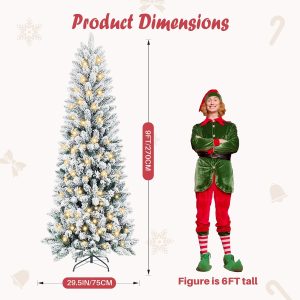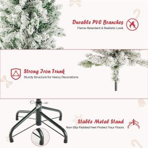 - [Lifelike Snowy Elegance]Crafted from high-quality, fire-resistant PVC, this Christmas tree features lush green branches beautifully dusted with soft white flocking for a natural winter-kissed look. The realistic snowy texture and durable PVC materials mimic the charm of a fresh snowfall, while the full foliage offers excellent ornament support. Effortlessly fluff the branches to create a stunning snowy-green silhouette that brings a magical and cozy winter atmosphere to your holiday celebrations.