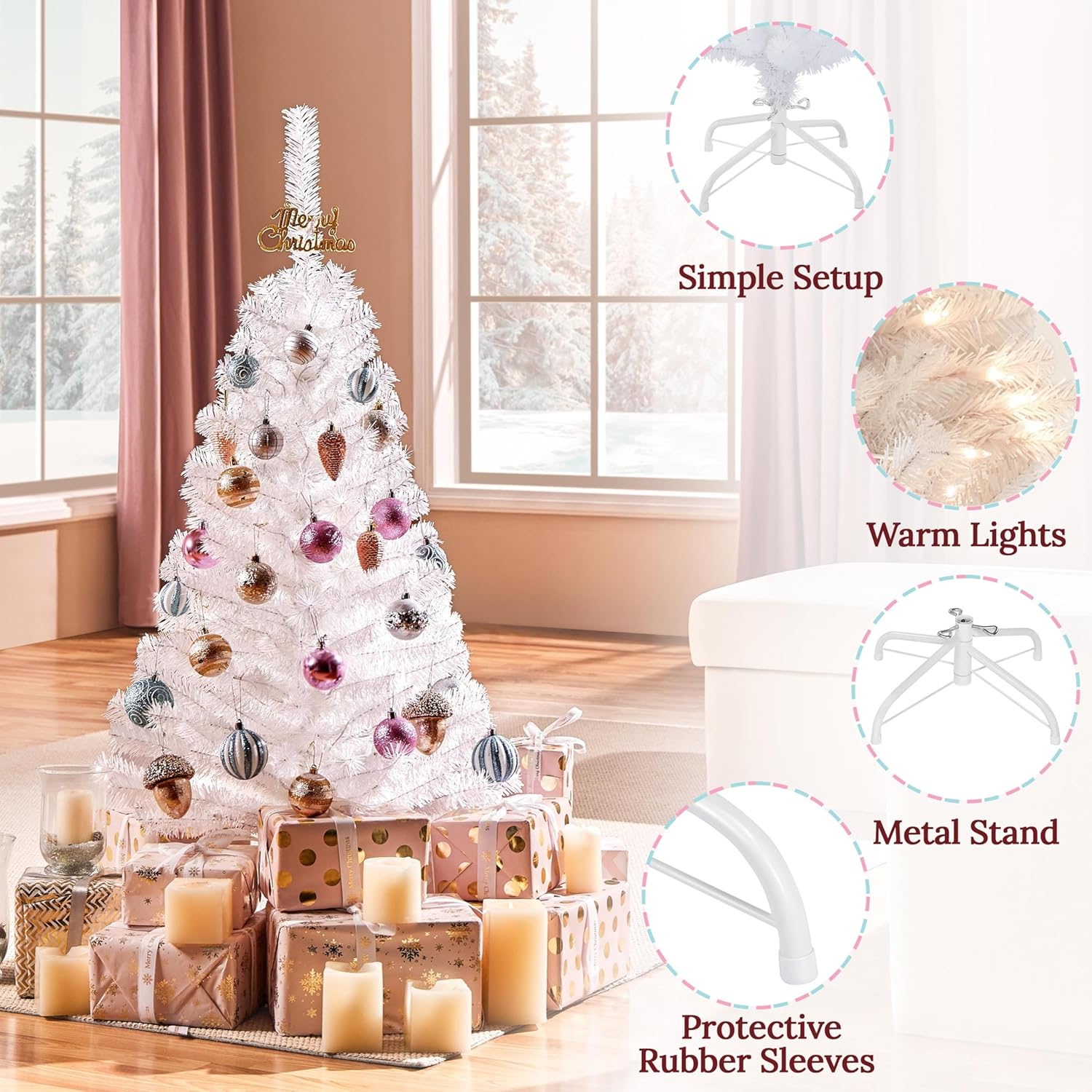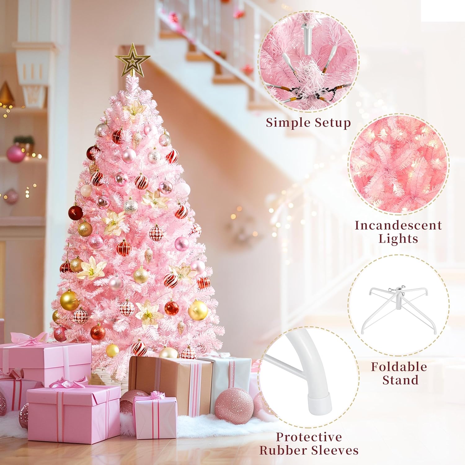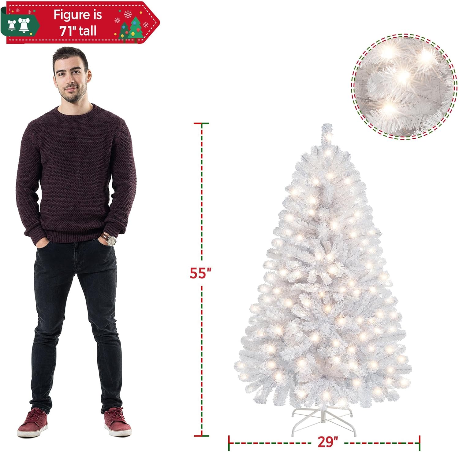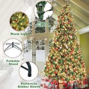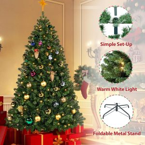 - CLEAR WARM LIGHTS: Our Christmas tree has ample incandescent warm white lights so you do not need to add extra lights. Place this artificial tree in front of the house or the garden, and let it shine all night in the worth-celebrating festival