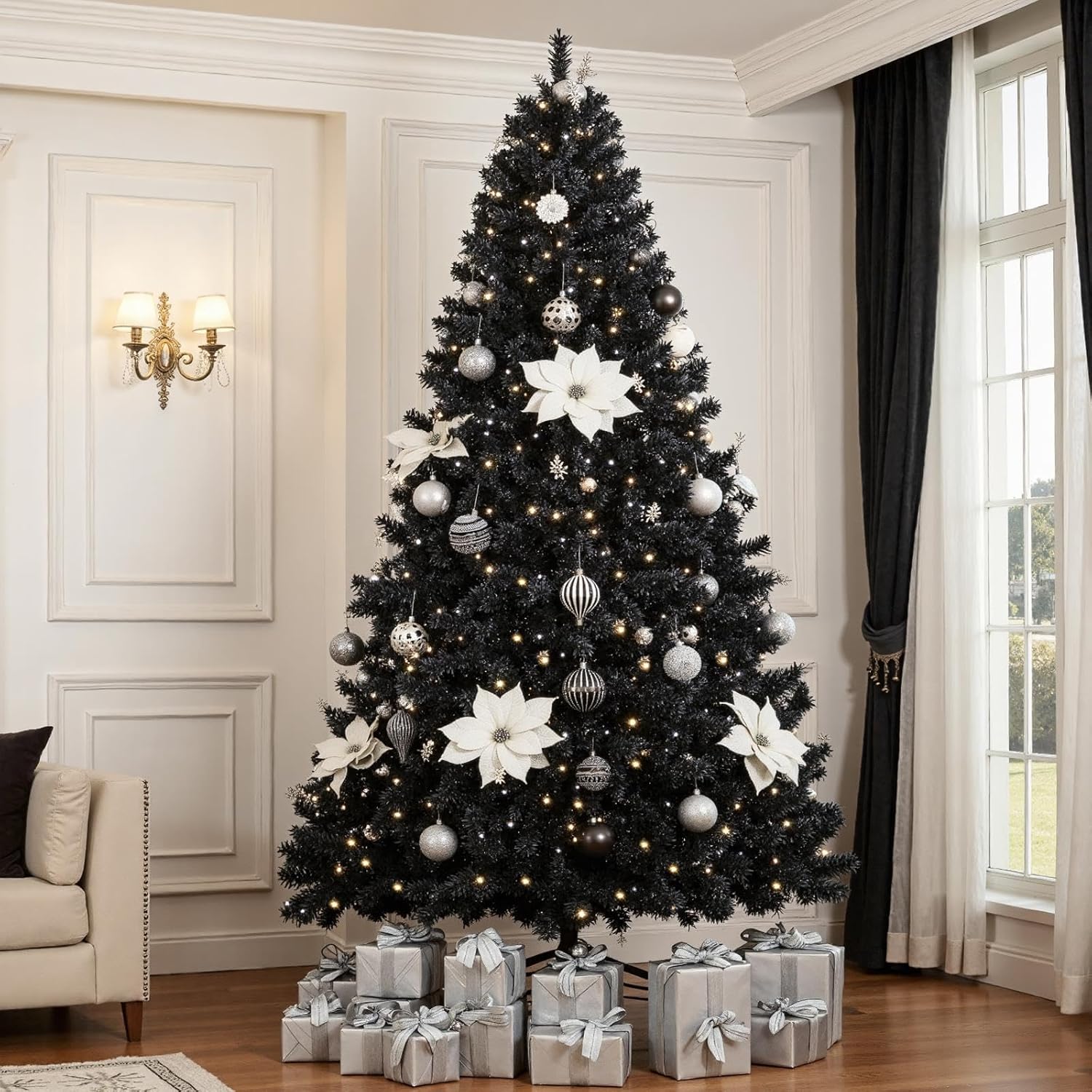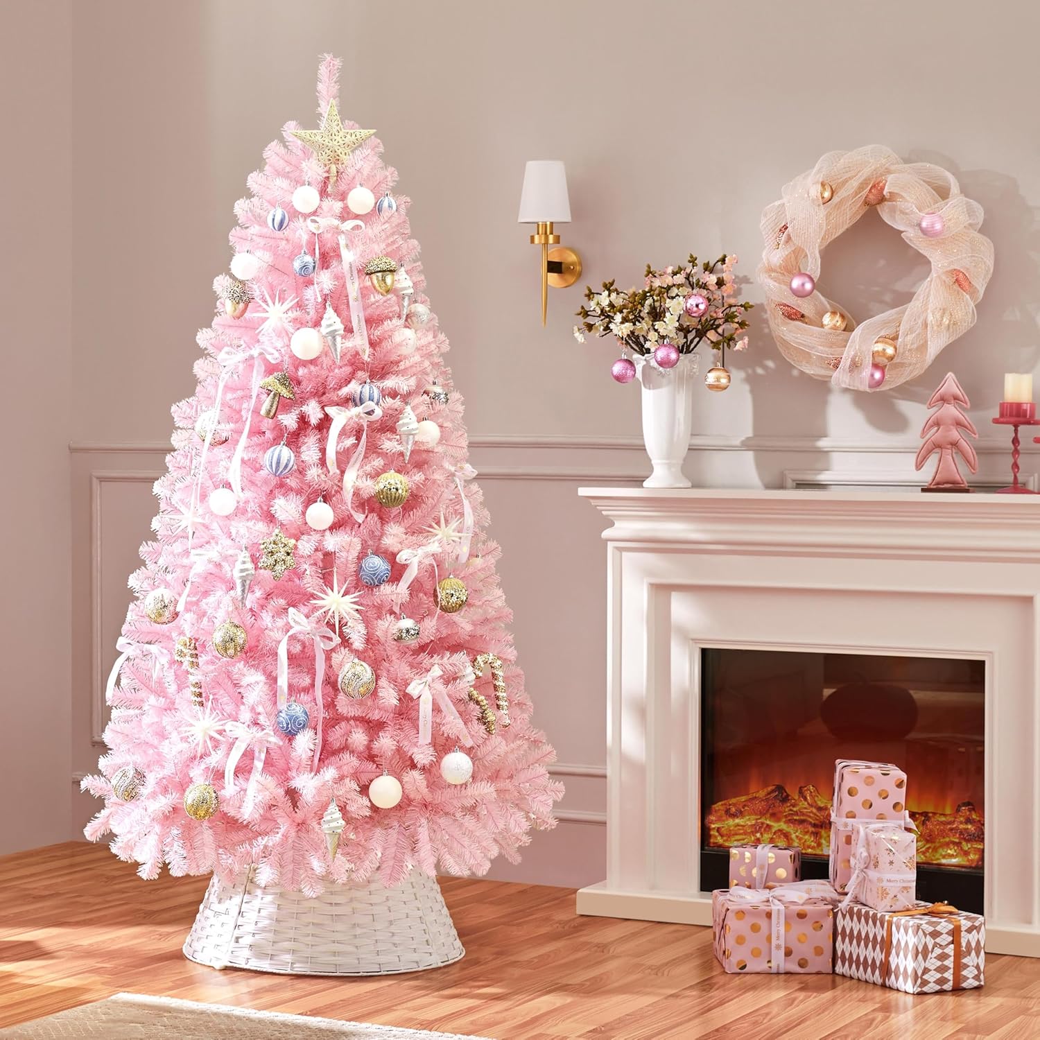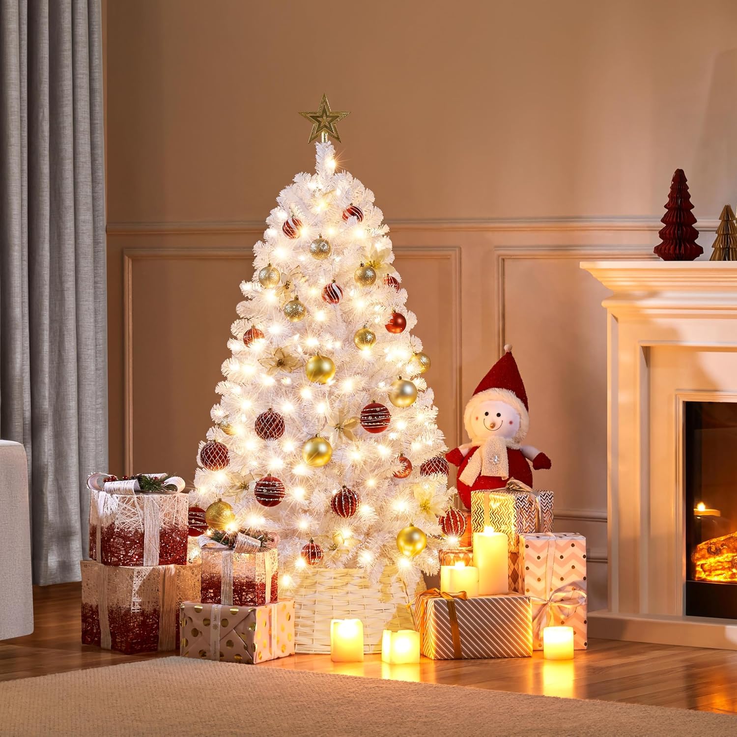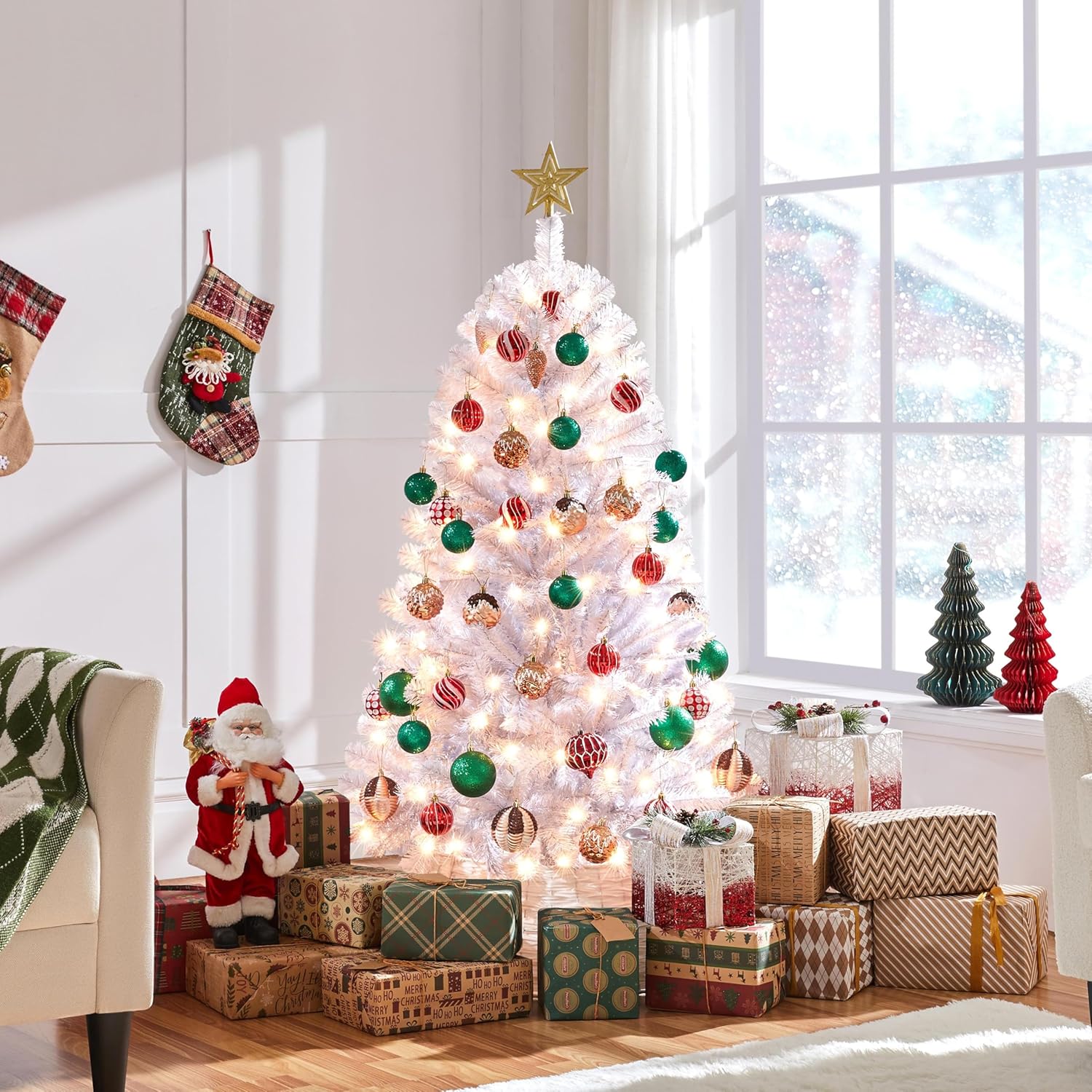- CLEAR WARM LIGHTS: Our Christmas tree has ample incandescent warm white lights so you do not need to add extra lights. Place this artificial tree in front of the house or the garden, and let it shine all night in the worth-celebrating festival
