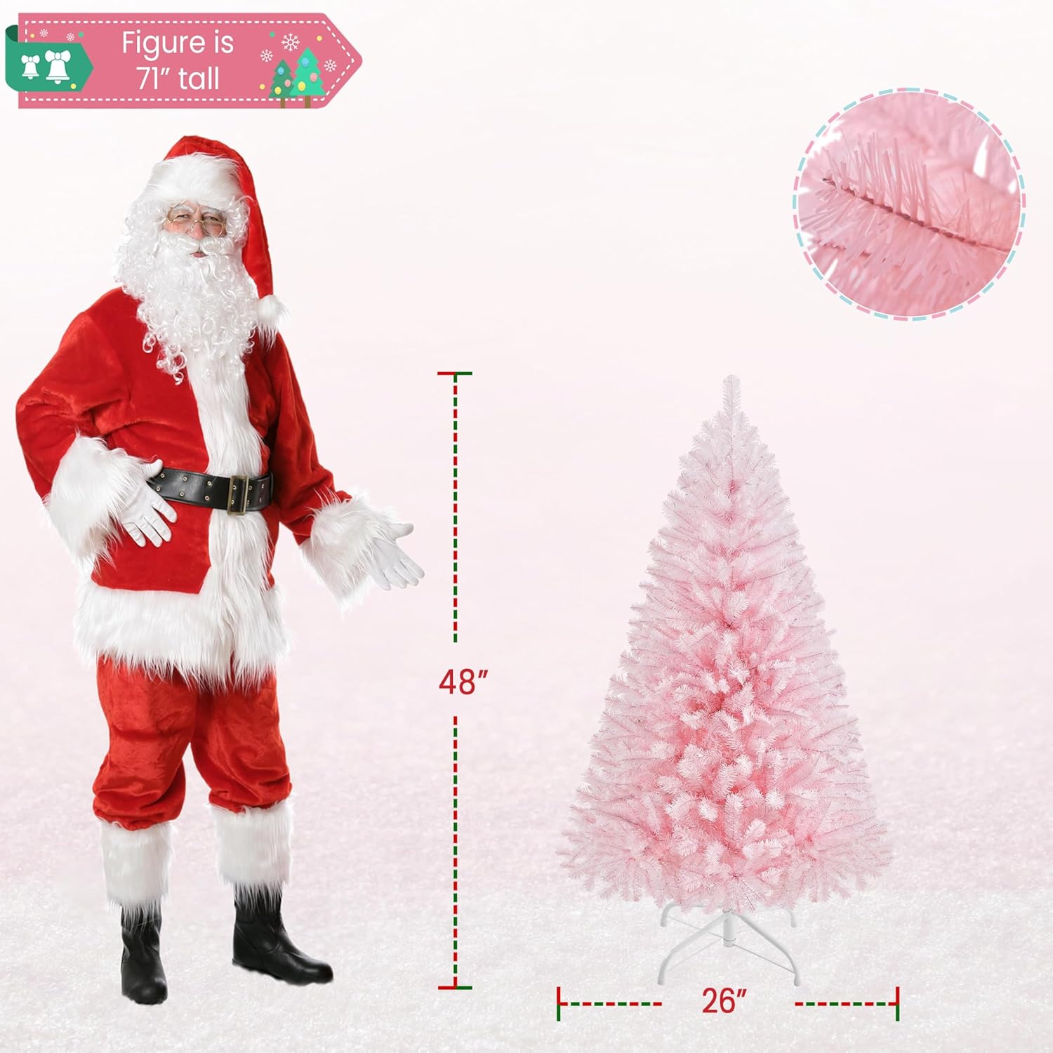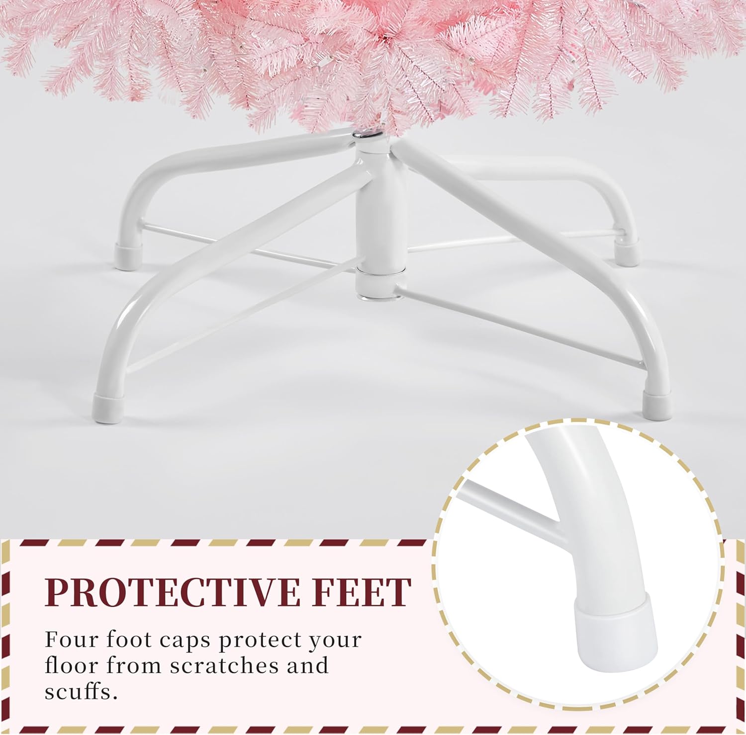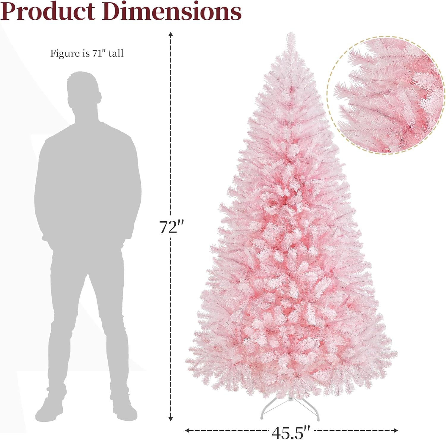 - QUALITY MATERIALS: Get into the holiday joy with this lush man-made tree. All branches and tips are made of premium PVC, which makes them durable. Both trunk and the stand are made of iron, ensuring sturdy and balanced placing