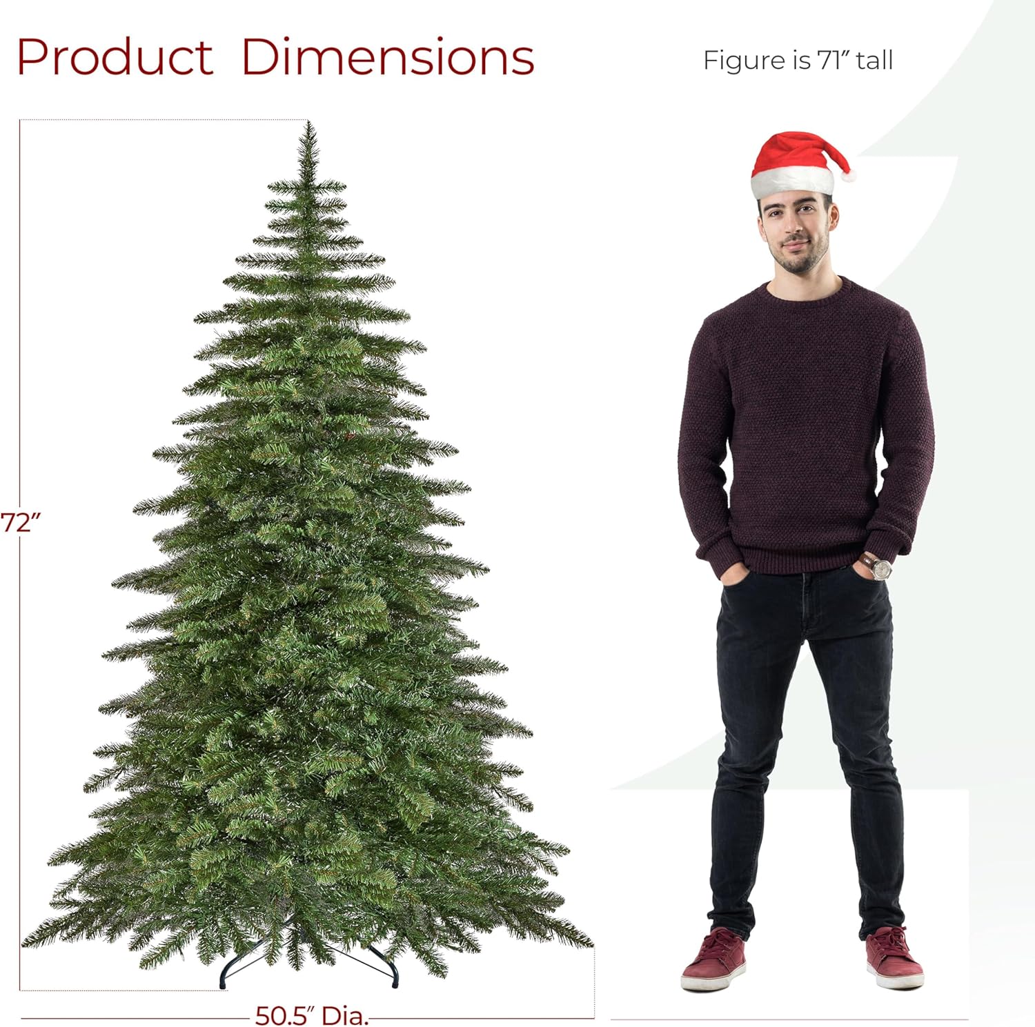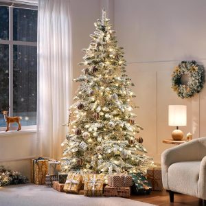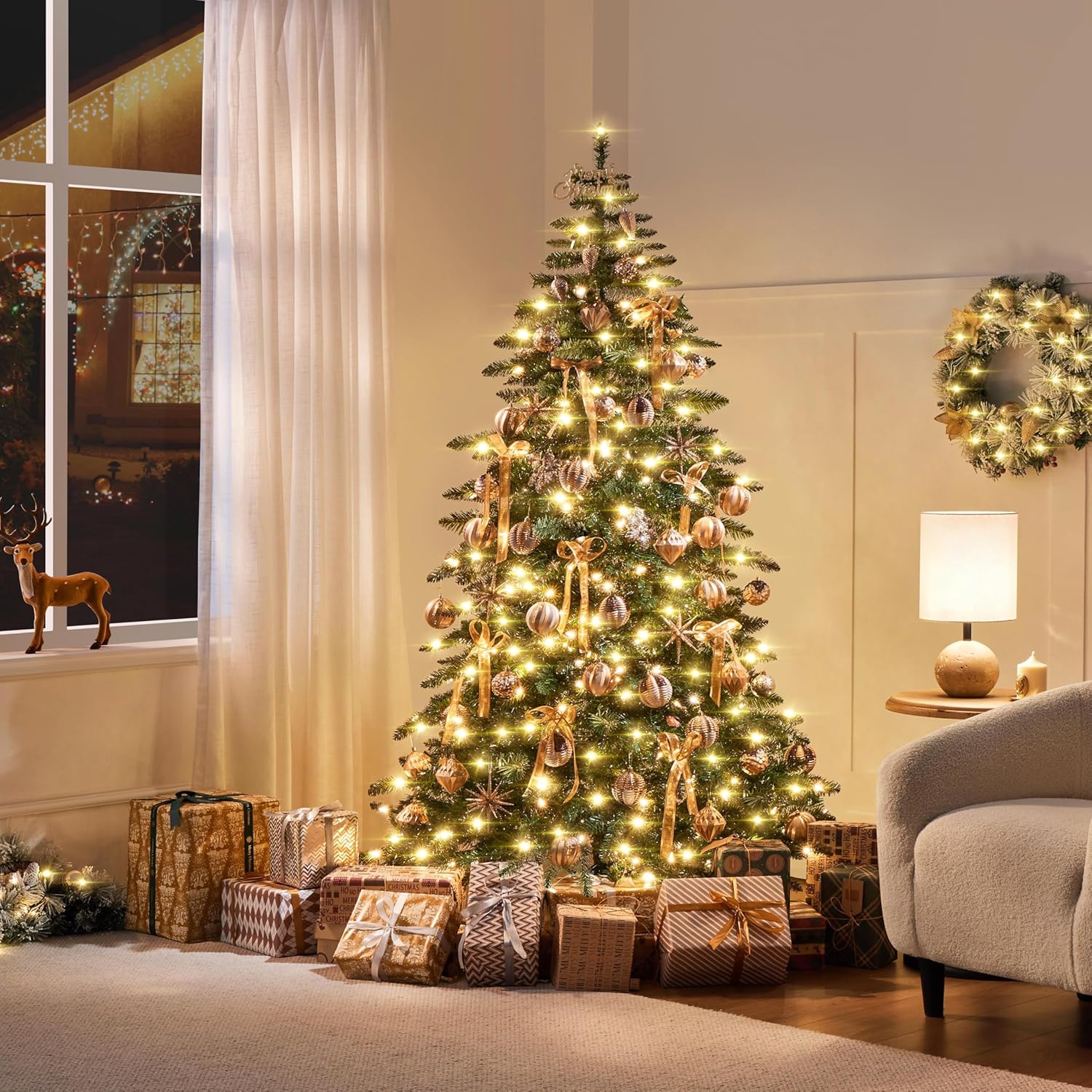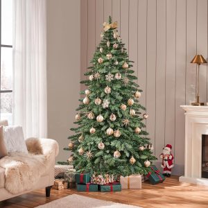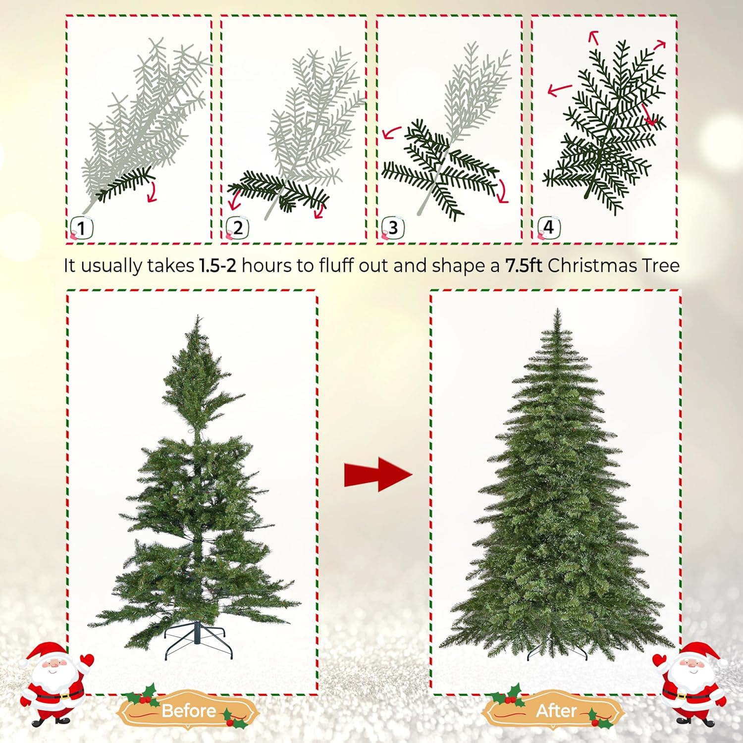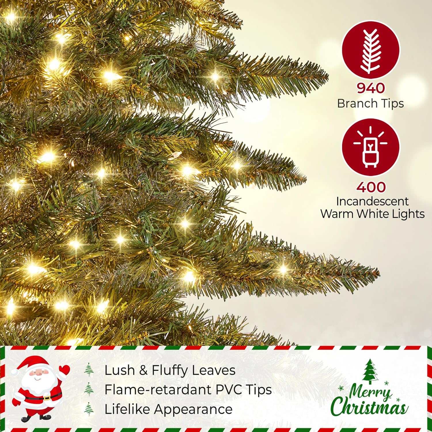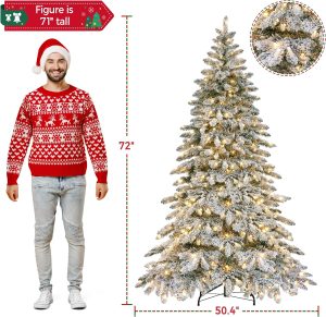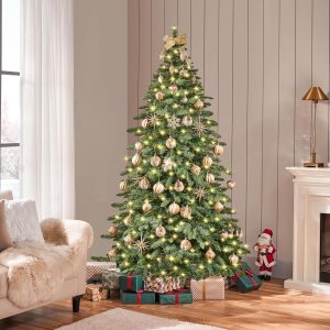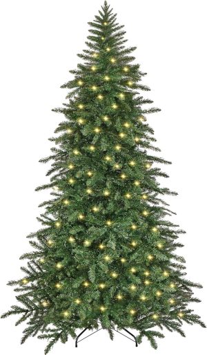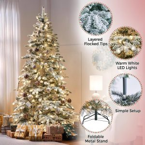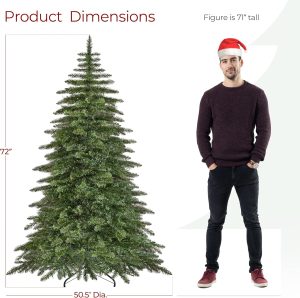 Yaheetech 7.5ft Pre-Lit Christmas Fir Tree with 550 Warm LED Lights & 1278 PVC Tips,Hinged Holiday Decorative Tree with Foldable Stand & Protective Foot Caps,Green