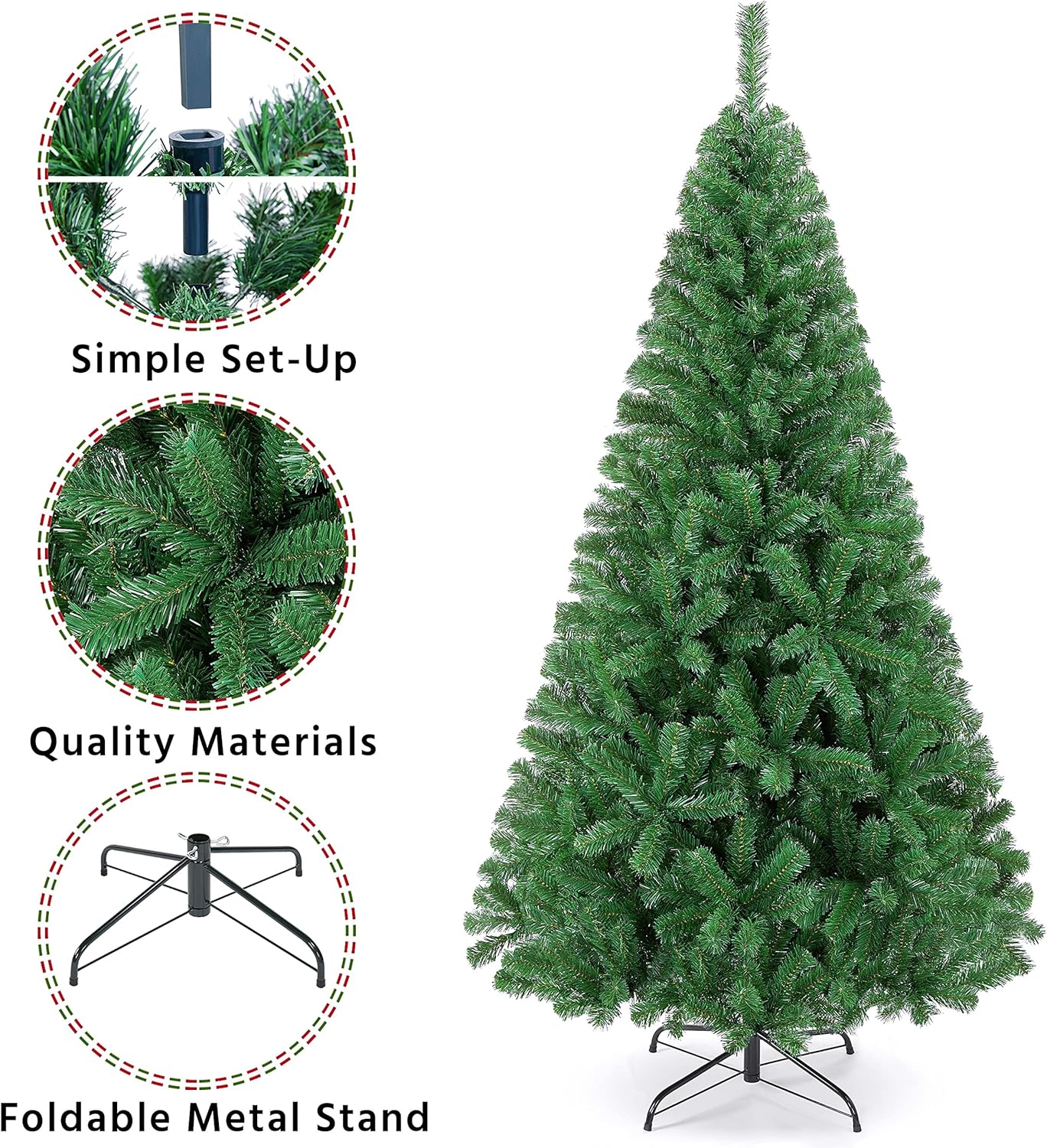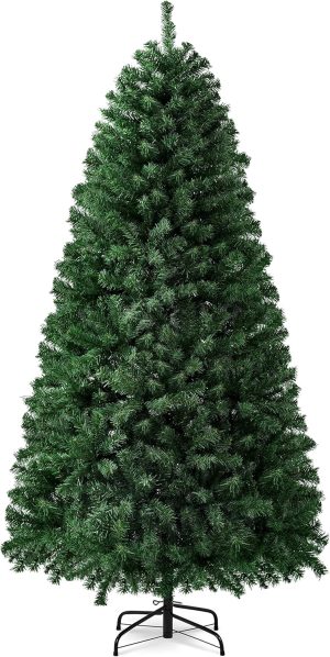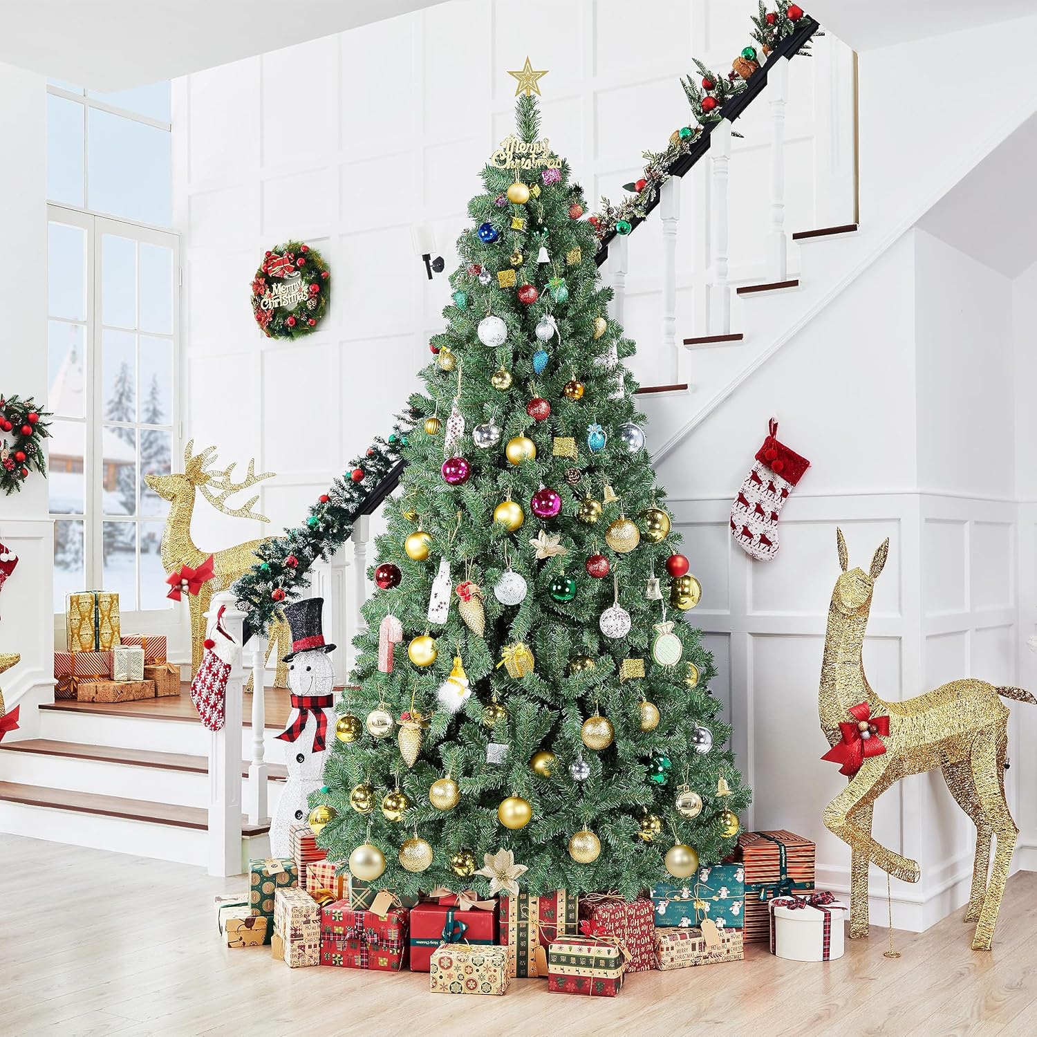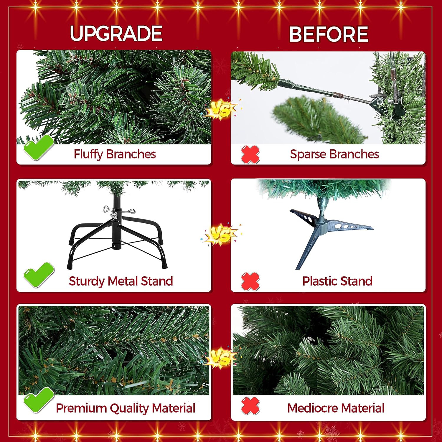 - Durable Artificial Tree: Unlike real trees, this artificial Christmas tree is made with lifelike PVC foliage and a sturdy metal base that stays vibrant year after year, ensuring long-lasting holiday charm