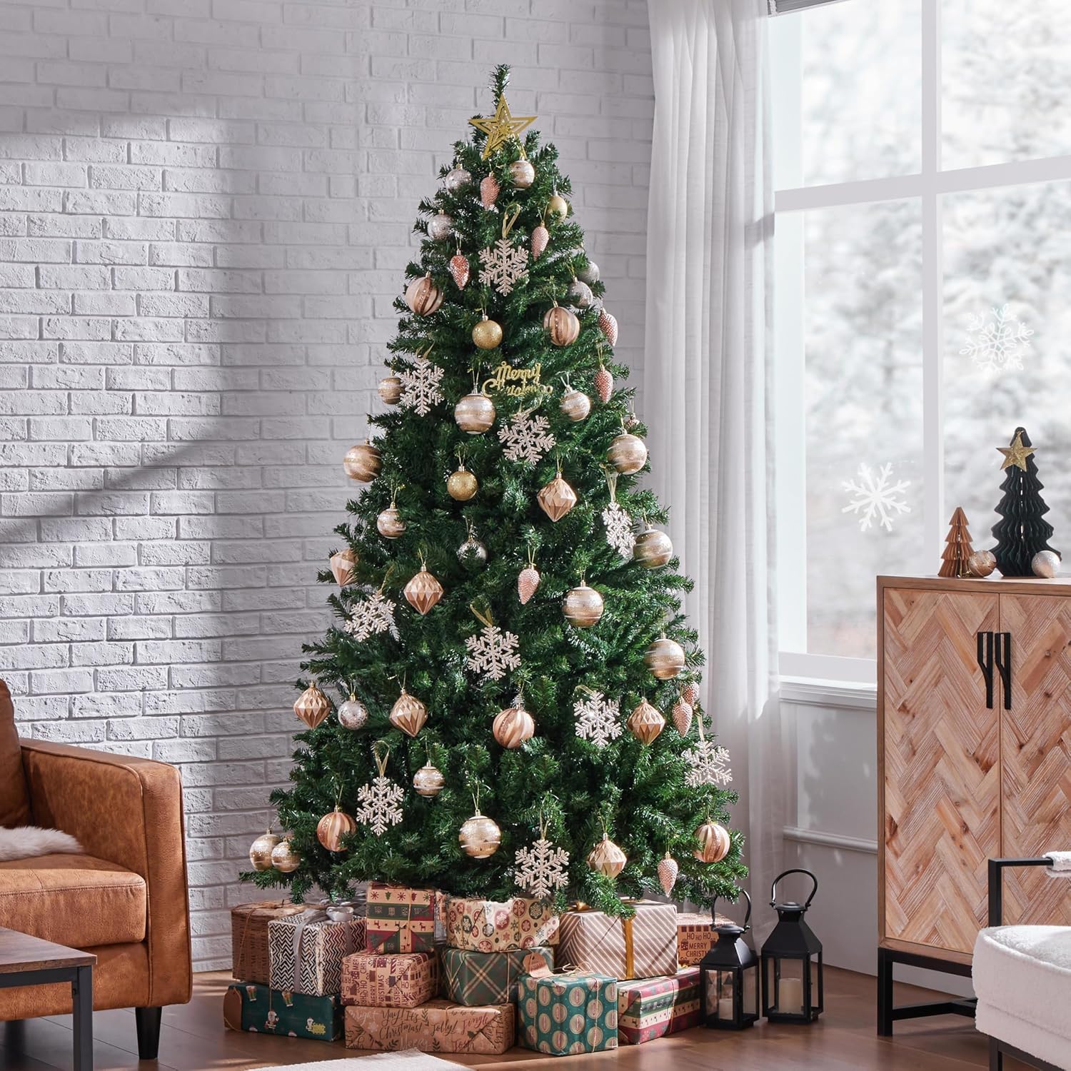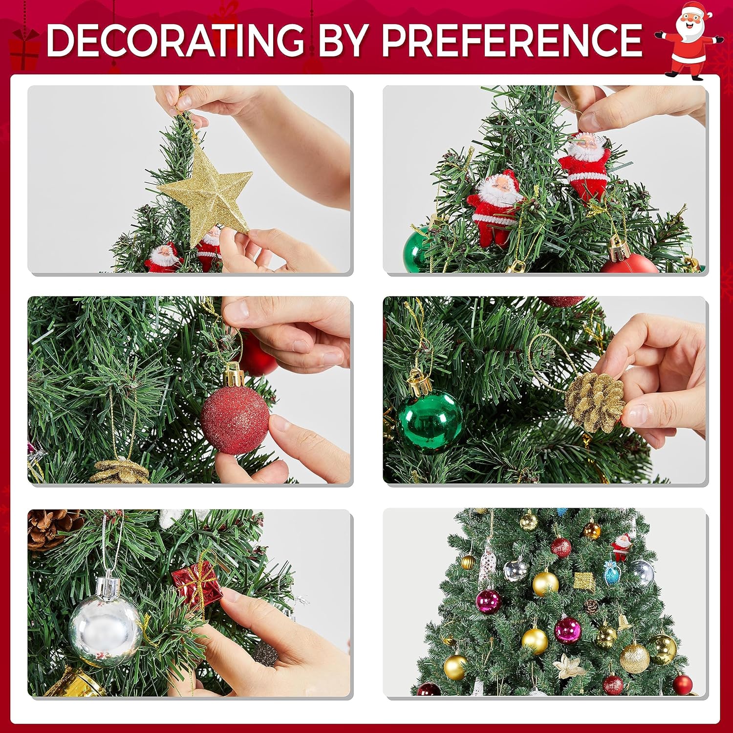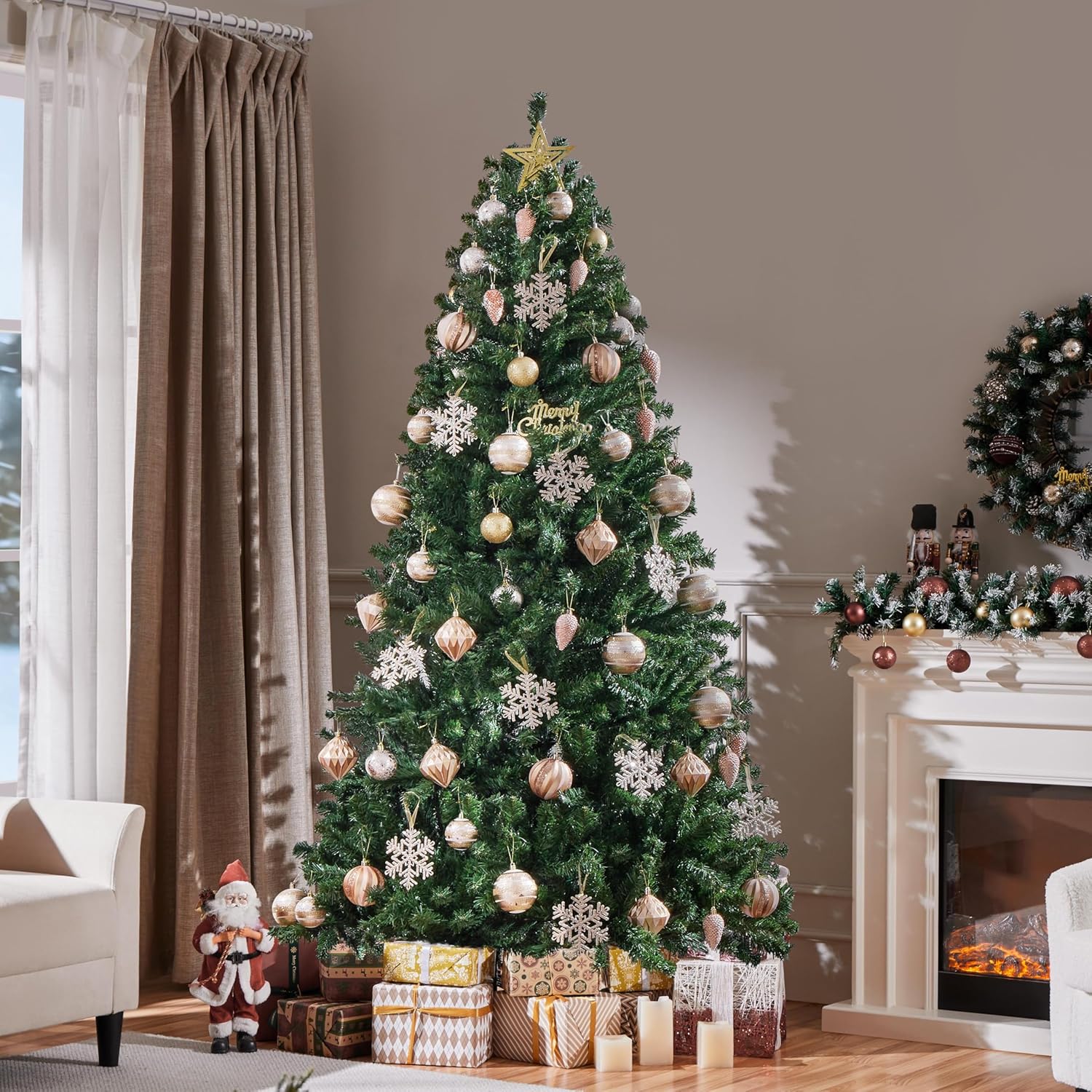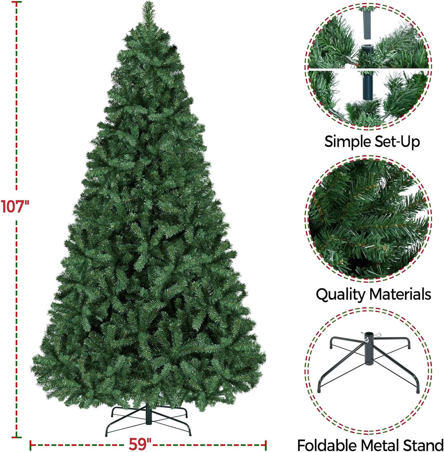 - Durable Artificial Tree: Unlike real trees, this artificial Christmas tree is made with lifelike PVC foliage and a sturdy metal base that stays vibrant year after year, ensuring long-lasting holiday charm