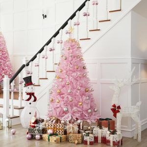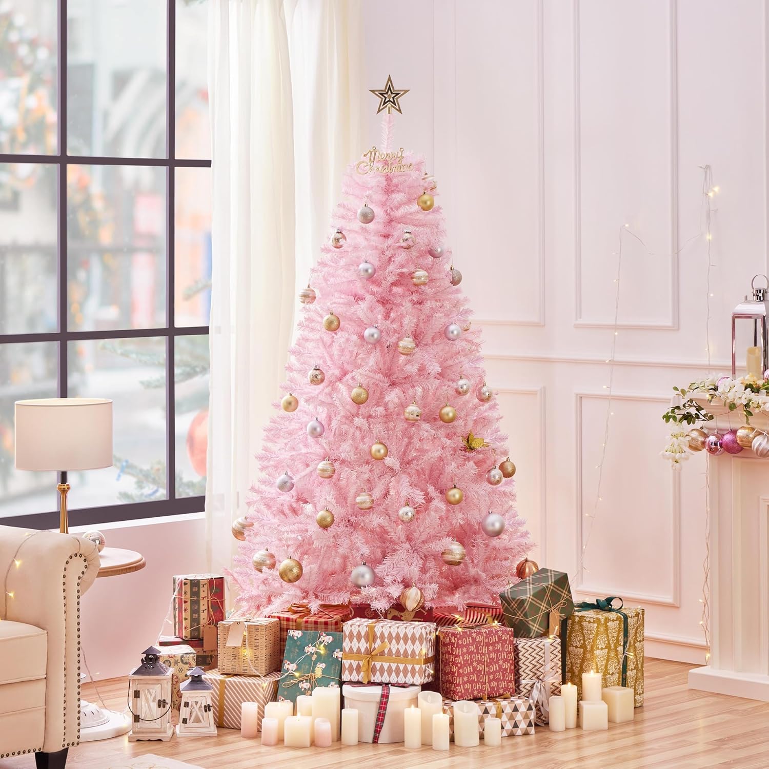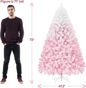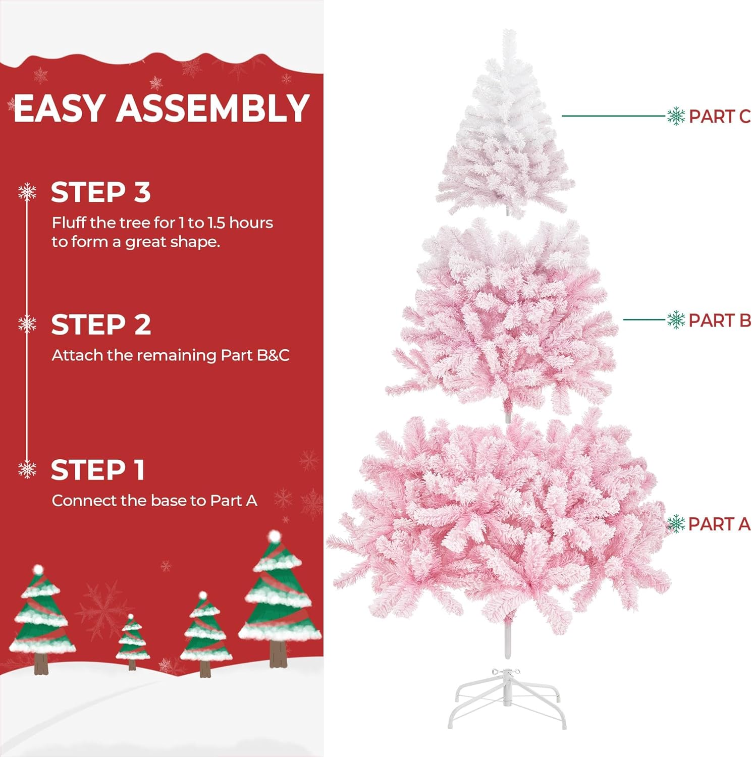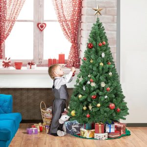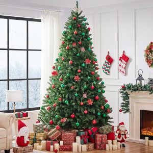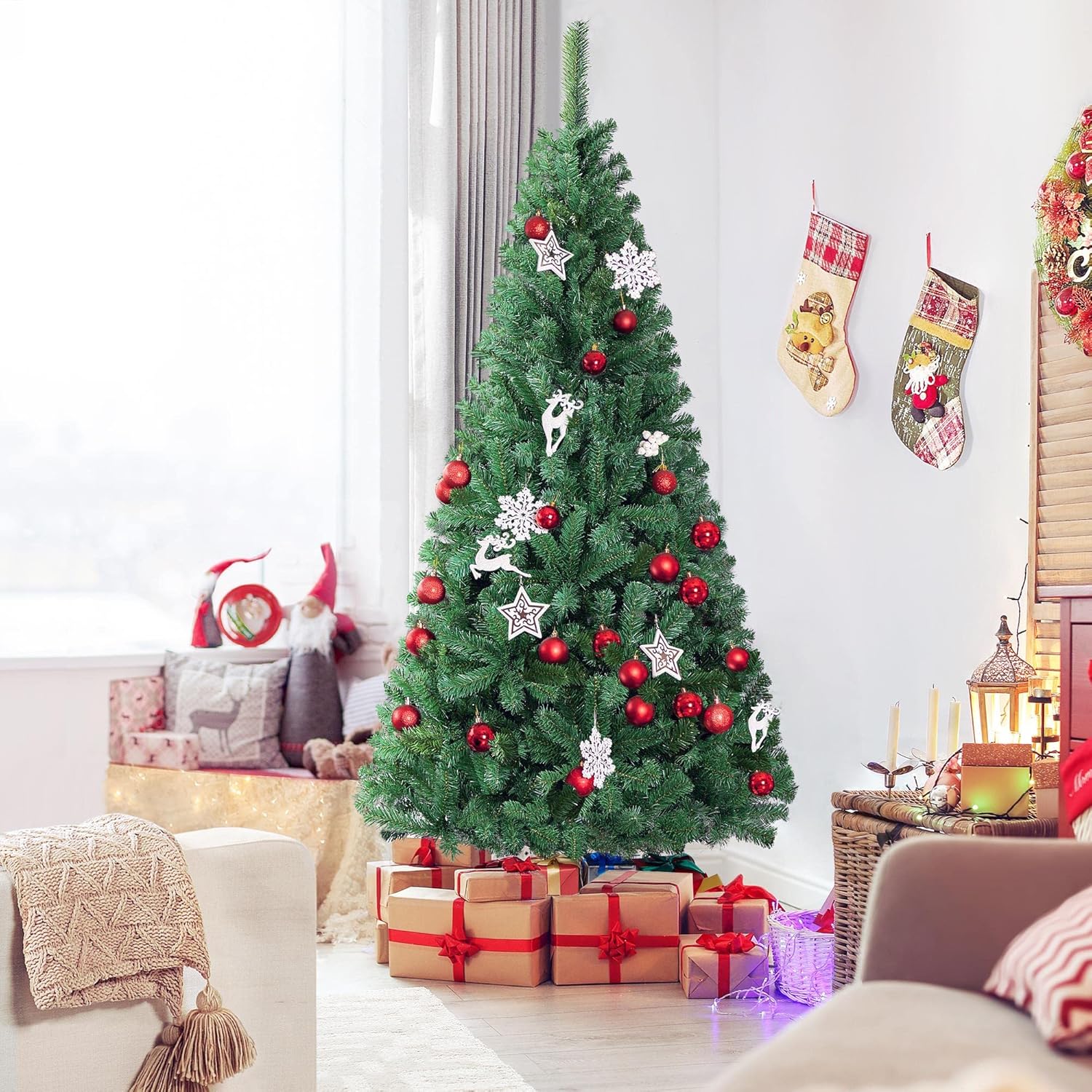 - Durable Artificial Tree: Unlike real trees, this artificial Christmas tree is made with lifelike PVC foliage and a sturdy metal base that stays vibrant year after year, ensuring long-lasting holiday charm