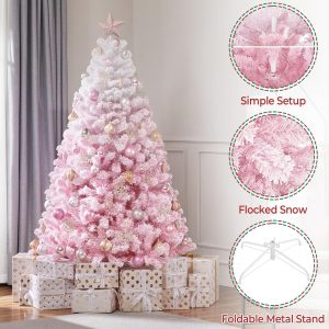 - Versatile Design: This lifelike flocked Christmas tree is suitable for both indoor and outdoor use. The sturdy metal stand ensures stability, making it ideal for living rooms or busy shopping streets