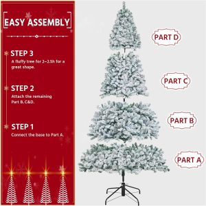 - Snow-dusted Look: Bring holiday spirit home with this Christmas fir tree. The abundant branches and lifelike flocked snow enhance its charm, creating a memorable vibe for your celebrations