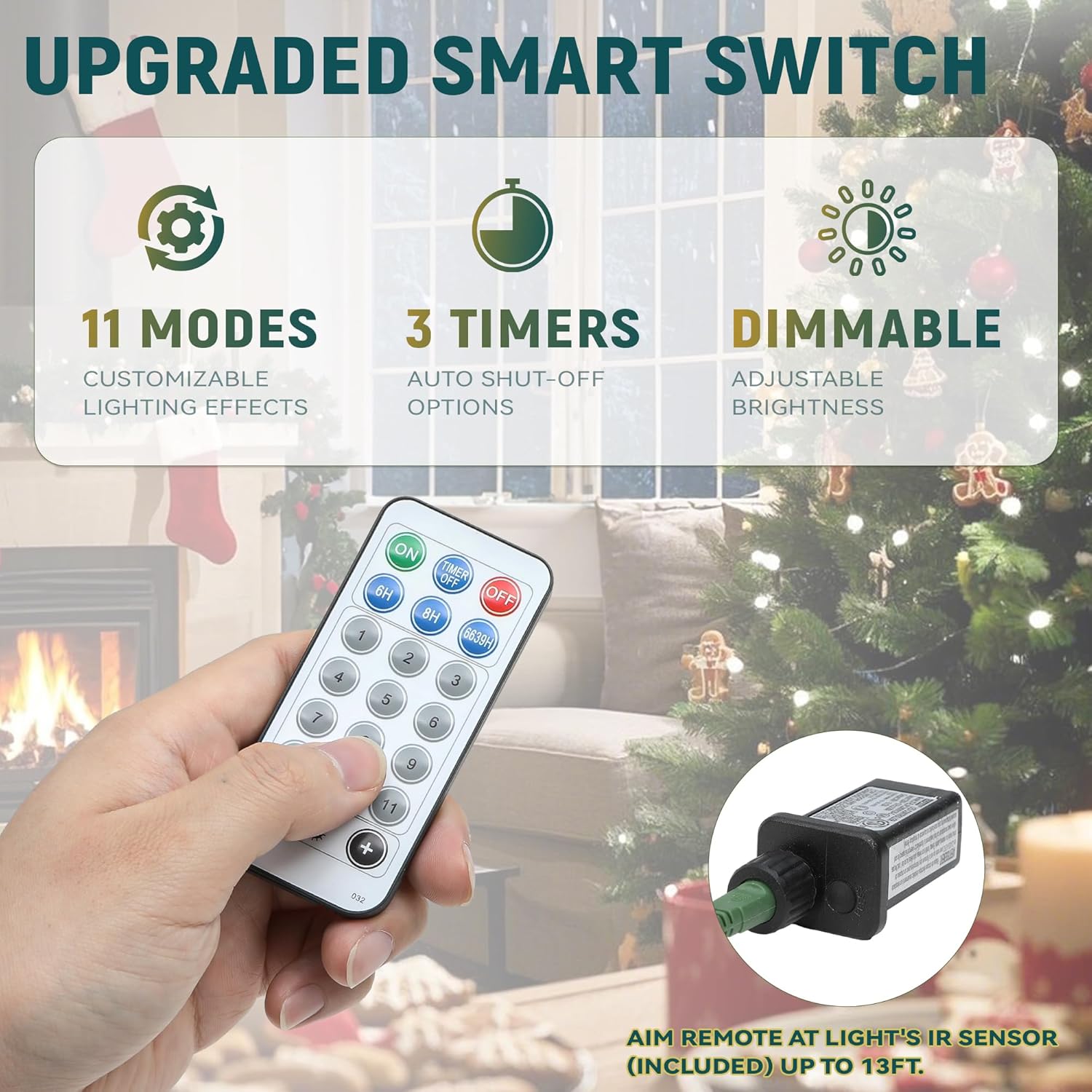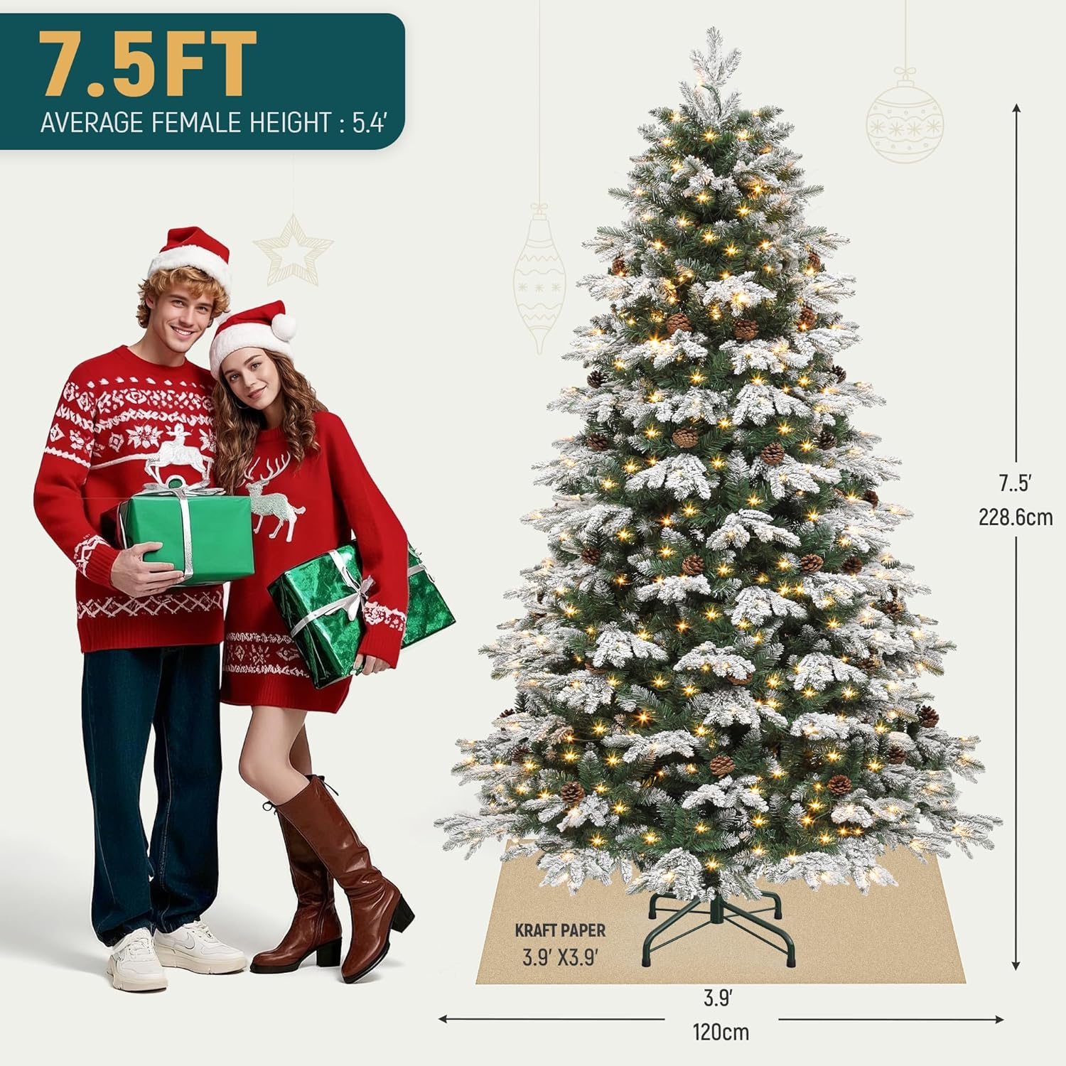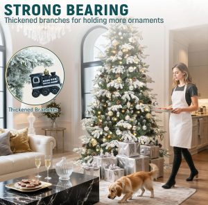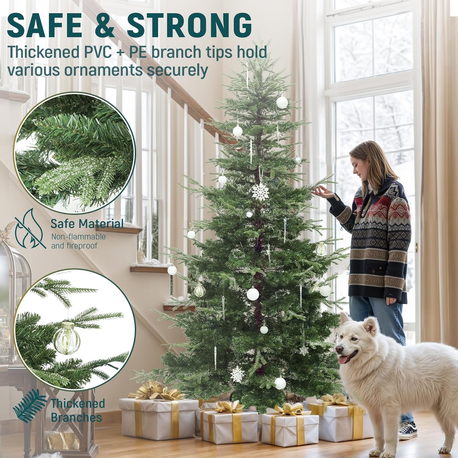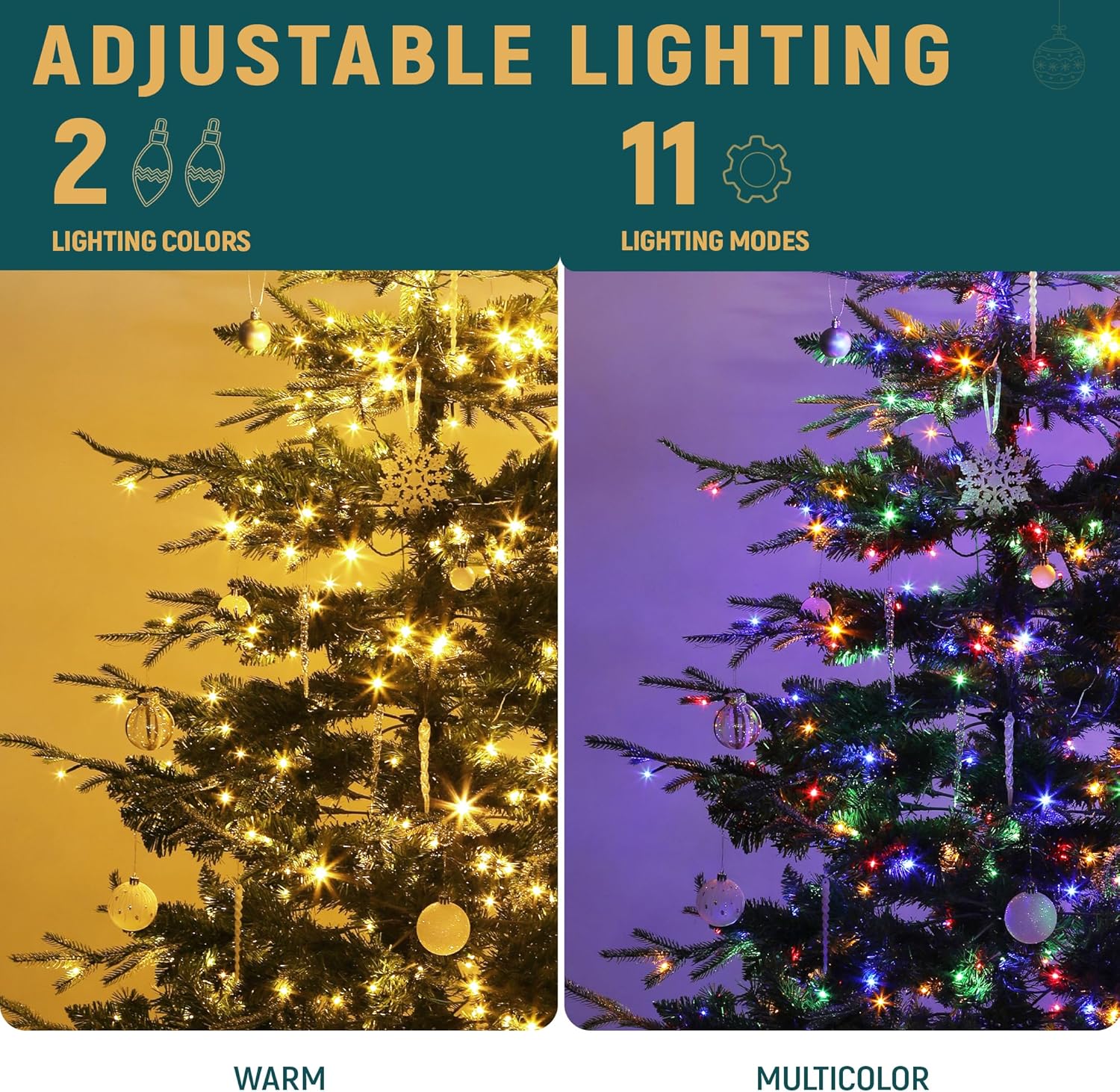 YITAHOME 6.5ft Aspen Fir Pre-Lit Christmas Tree with Remote Control, Crystal-Decorated Prelit Christmas Tree with 900 PE&PVC Mixed Branch Tips, 11 Lighting-Modes, Green