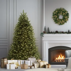 The Dunhill Fir® is a full body tree featuring a generous number of branch tips for holding holiday trimmings. It is pre-strung with 600 clear lights that remain lit even if a bulb burns out. This tree features hinged branch construction for ease of assembly. Sturdy metal tree stand is included. Plug in.