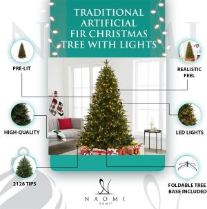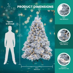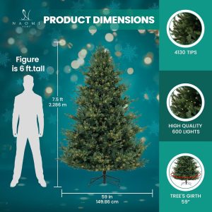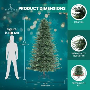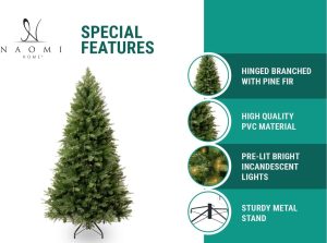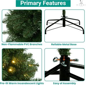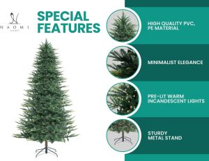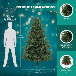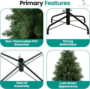 - REALISTIC 6FT ARTIFICIAL CHRISTMAS TREE: The Naomi Home 6ft unlit Christmas tree features 1,000 dense PVC branch tips that mimic the texture and fullness of real pine needles. Its lush, full-body design (44″ W x 44″ D) creates a lifelike holiday centerpiece for your home or office.