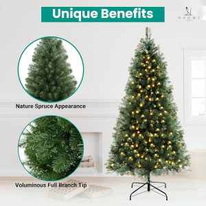 - HINGED BRANCHES & STURDY METAL BASE: Durable hinged branches make shaping easy and support ornaments of all sizes. The stable metal base keeps the tree upright and secure throughout the holiday season.