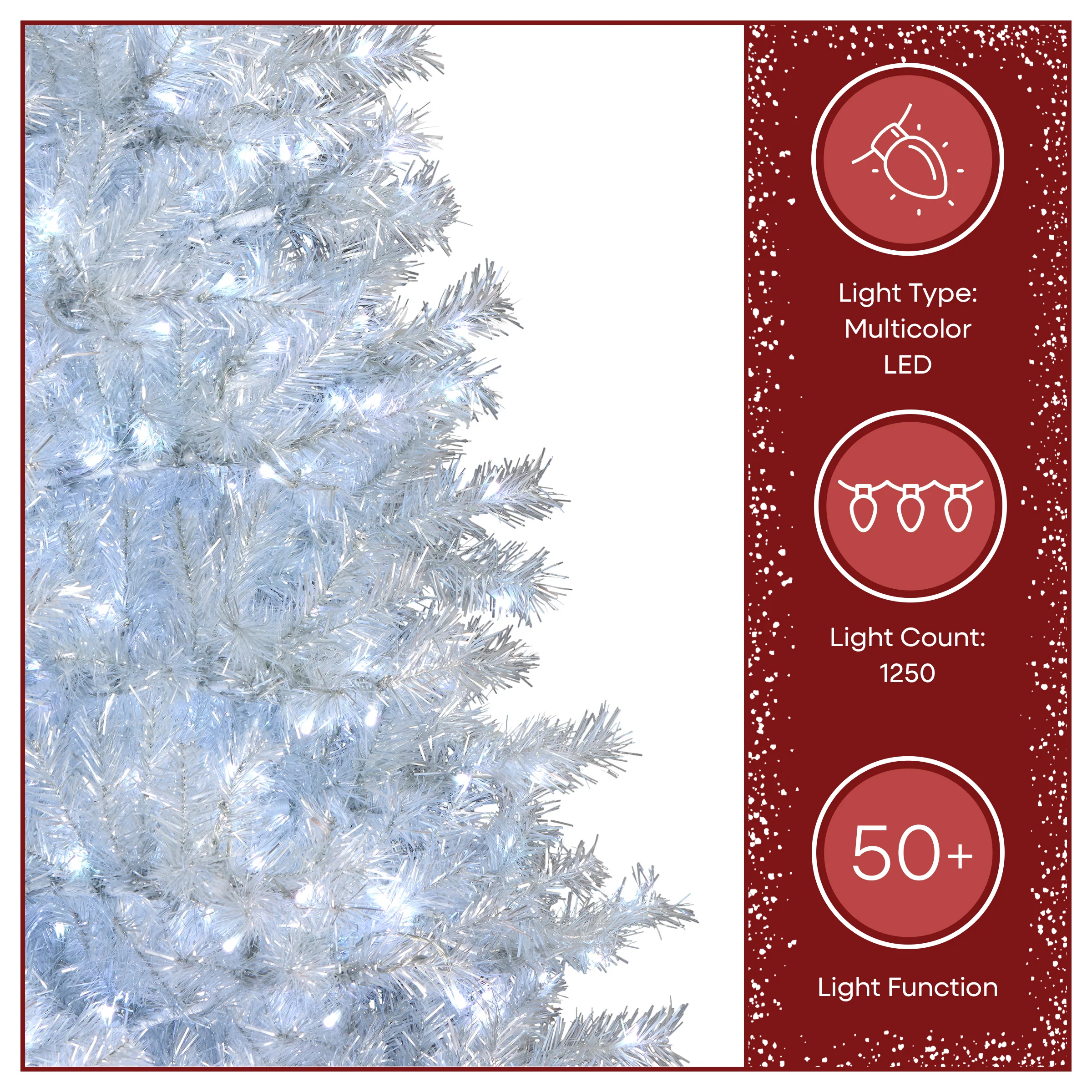 - PRELIT WITH 1,250 LED LIGHTS: Arrives pre-strung with 1,250 multicolor energy efficient LED lights that offer over 50 different light functions controlled by a handheld remote control