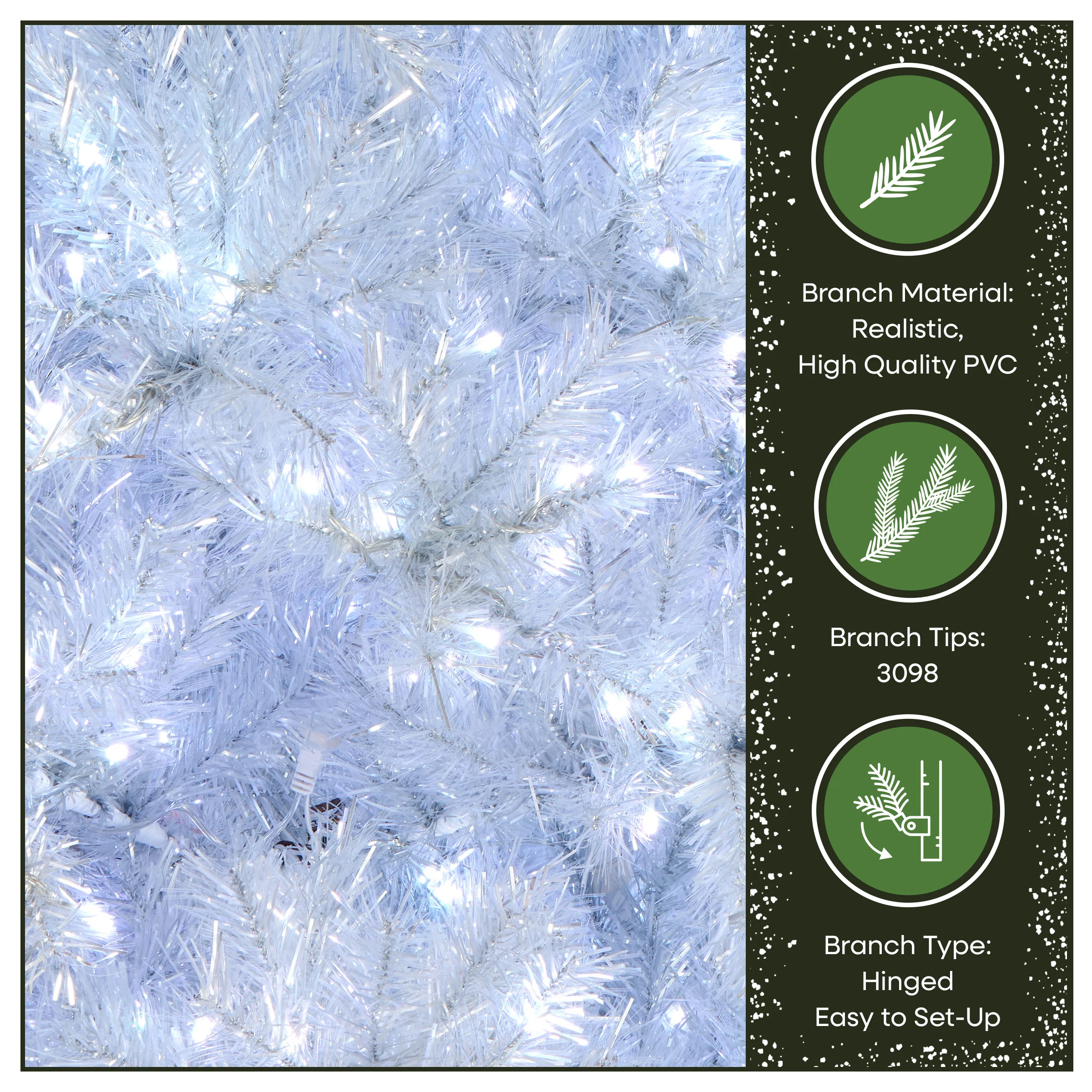 Celebrate the season in grand style with the National Tree Company 10ft Prelit Crystal Pine Artificial Christmas Tree, a luxurious, full-bodied Christmas tree with lights designed to elevate any holiday space. Standing at an impressive 10 feet tall, this artificial tree features 3,098 PVC branch tips. It is pre-strung with 1,250 multicolor LED energy-efficient Infinity Lights® with over 50 different light functions that remain illuminated even if one bulb goes out. Infinity Lights® are low voltage LED lights that utilize an ultra-small “rice-size” bulb. Light counts are then increased two to three times the typical light volume of a comparable product lit with standard size miniature lights. The results produce a lighting effect that is both stunning and elegant. You can easily customize this pre-lit Christmas tree using the 50+ light functions to perfectly match any festive gathering by using its hand-held remote control. The hinged branch construction on this prelit Christmas tree allows for quick assembly. Branches drop down for shaping and fold back up for easy, compact storage. Crafted with fire-resistant, hypoallergenic materials and supported by a sturdy metal stand, this premium tree combines elegance, safety, and convenience for years of seasonal enjoyment. For over 60 years, National Tree Company has been the trusted leader in lifelike holiday décor, helping families bring home the magic of Christmas year after year.