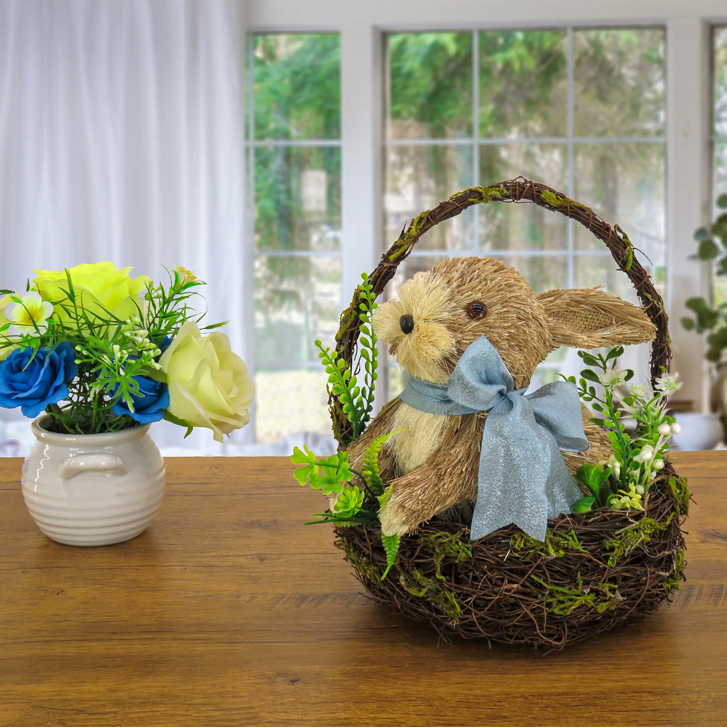 - Place this delightful decoration on a table, windowsill or mantle indoors to add a fun and natural flair to any Easter-themed decorative arrangement