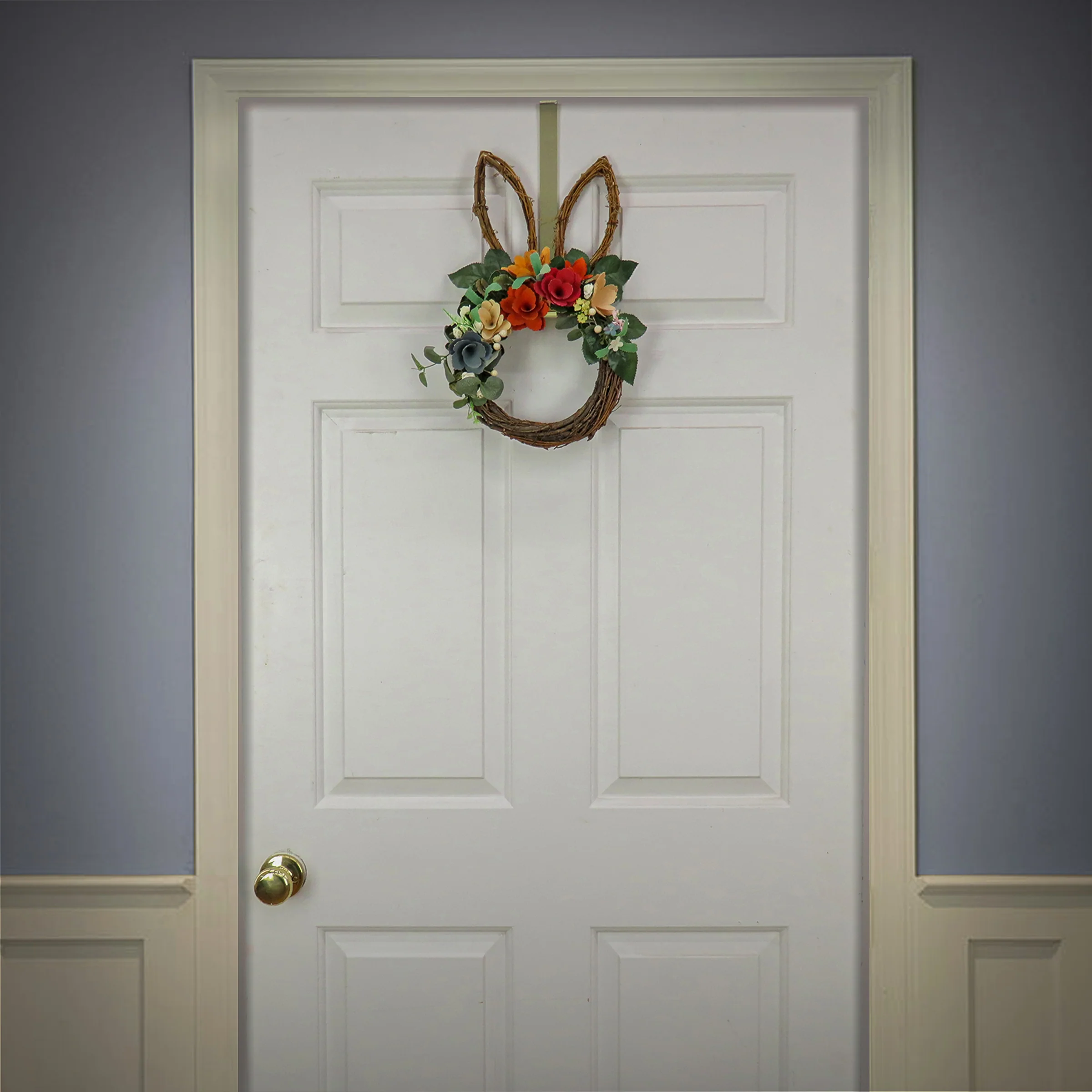 - Hang this delightful decoration on a door, wall, window or mantle indoors to add a fun and natural flair to any Easter-themed decorative arrangement