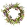 22 in. Easter Wreath Decorated with Pink Pastel Eggs, Pink Flowers, Leafy Greens